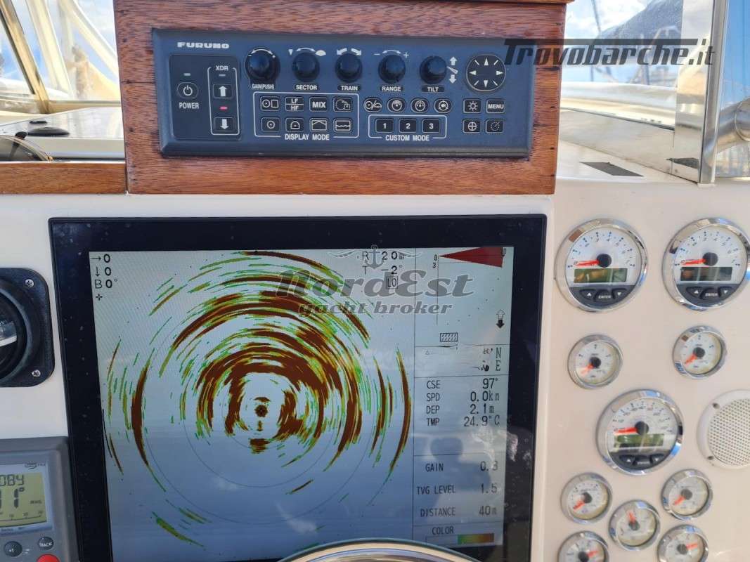 Faro orientabile - Autopilota - Ecoscandaglio - GPS/Plotter - Radar - VHF - Manette elettroniche - Impianto stereo