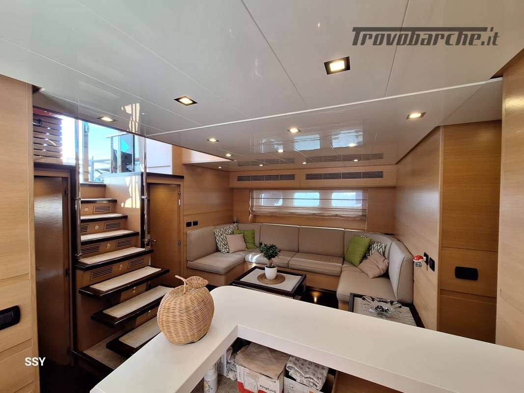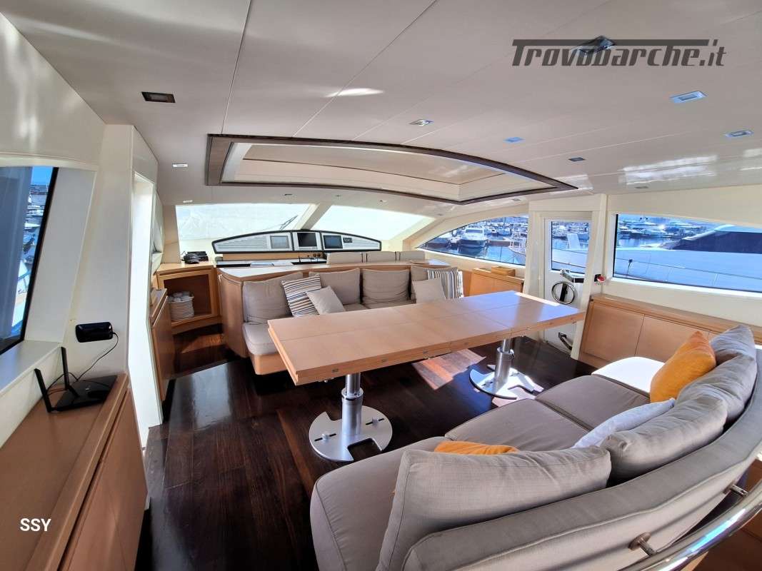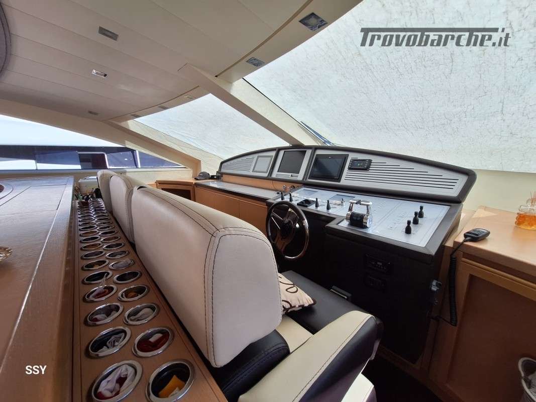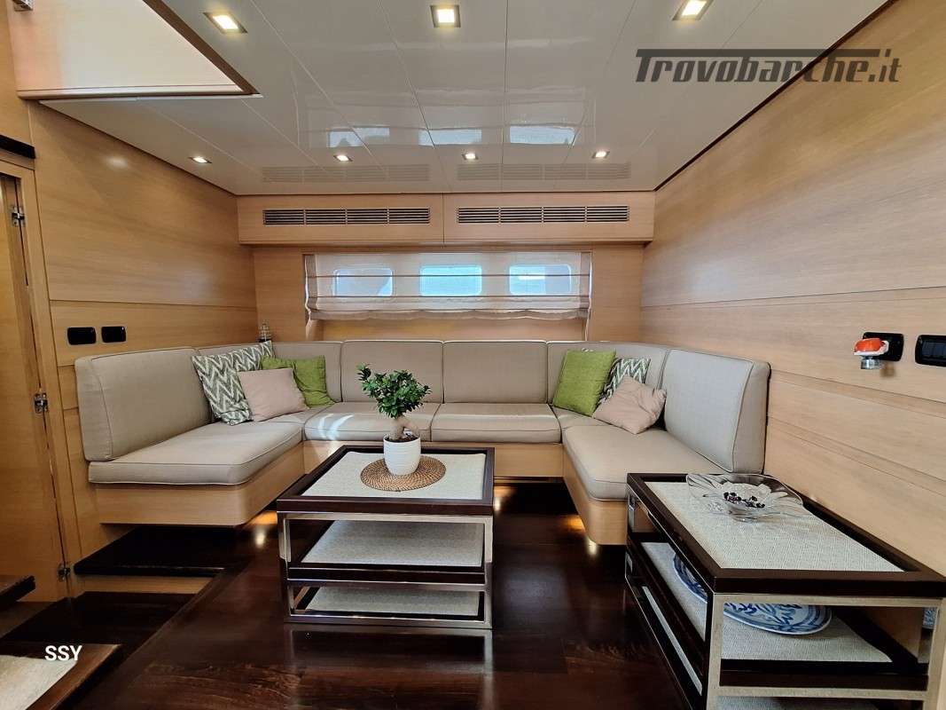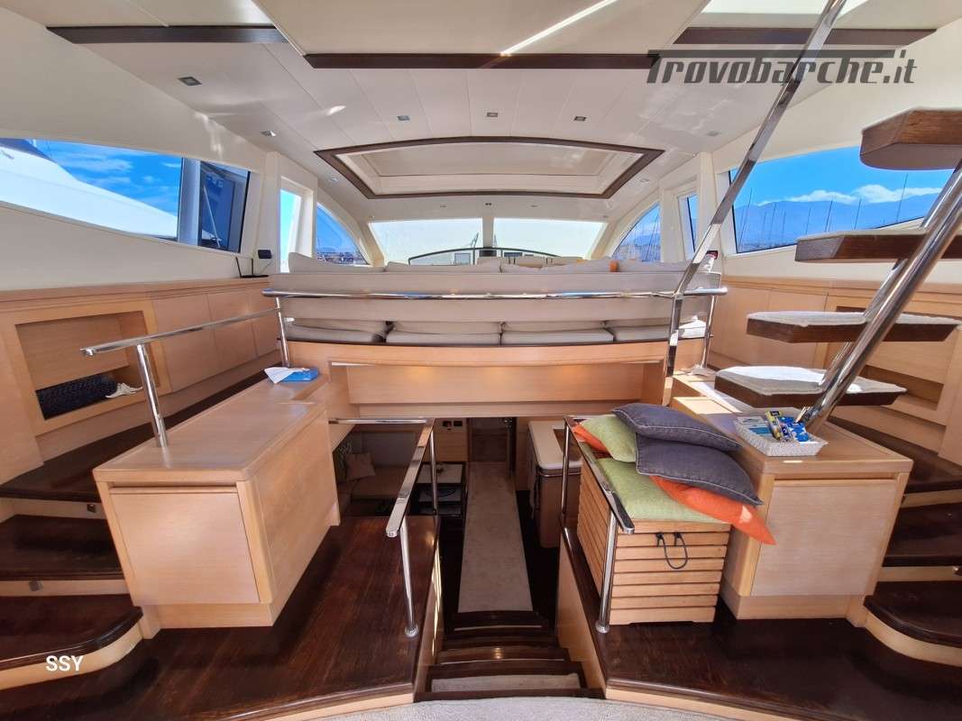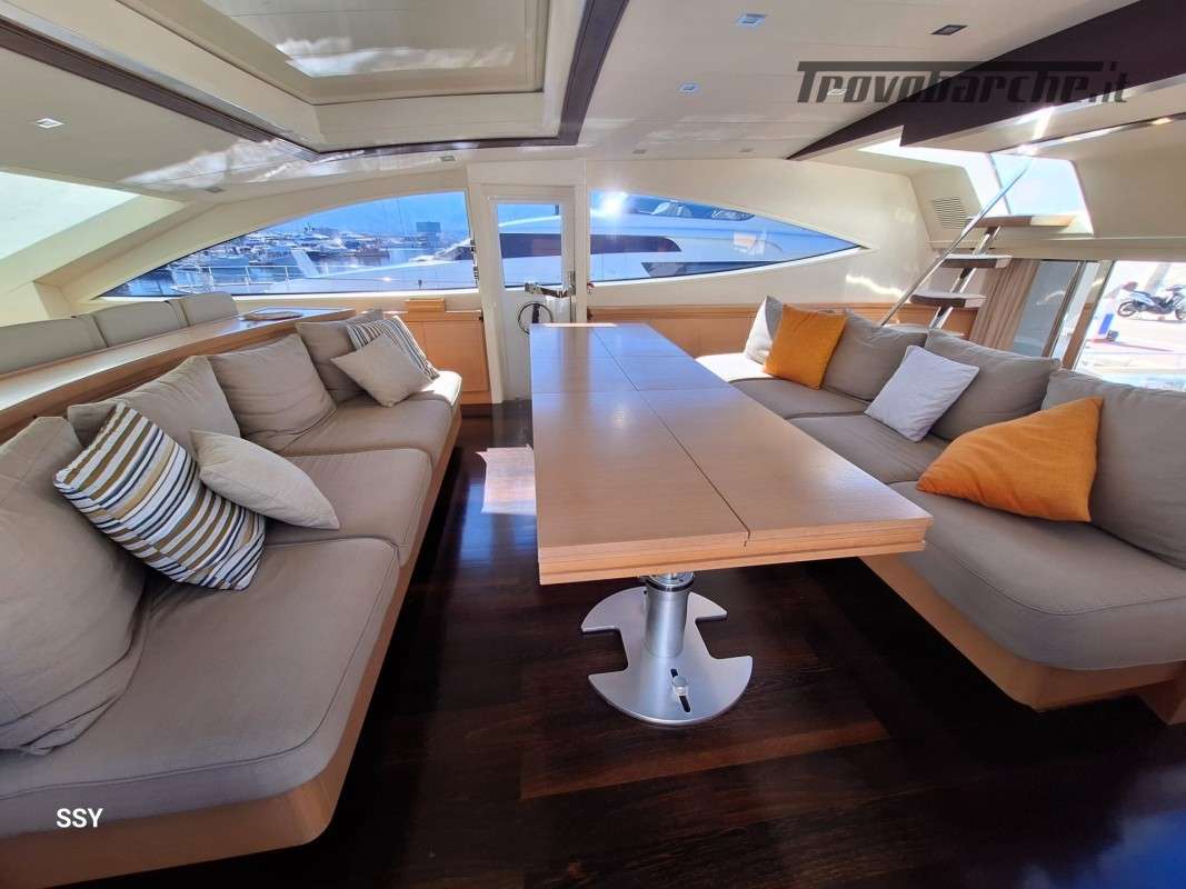- Ampio salone/zona pranzo con due divani contrapposti e 2 tavoli telescopici per 10pax, smart TV ascomparsa, frigobar in acciaio Frigoboat, plancia comandi;