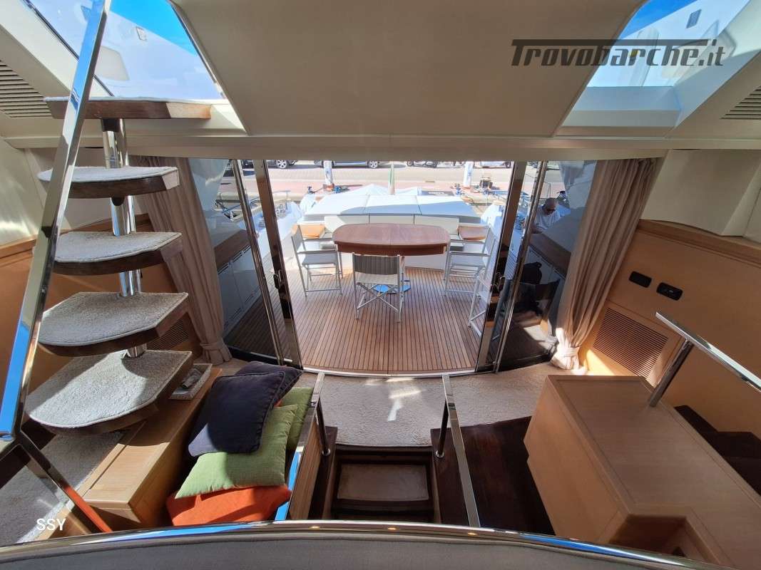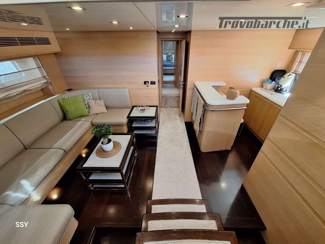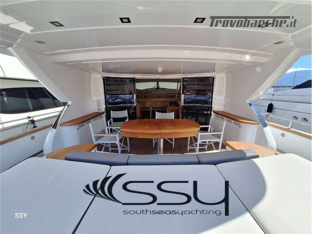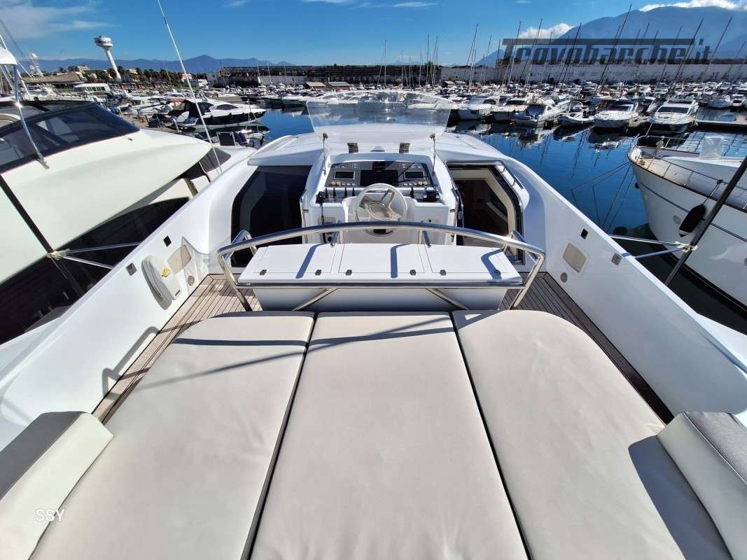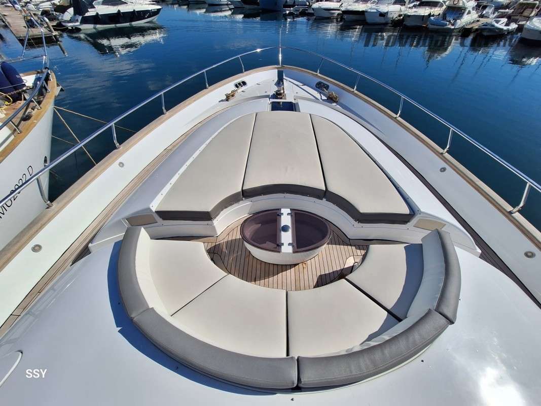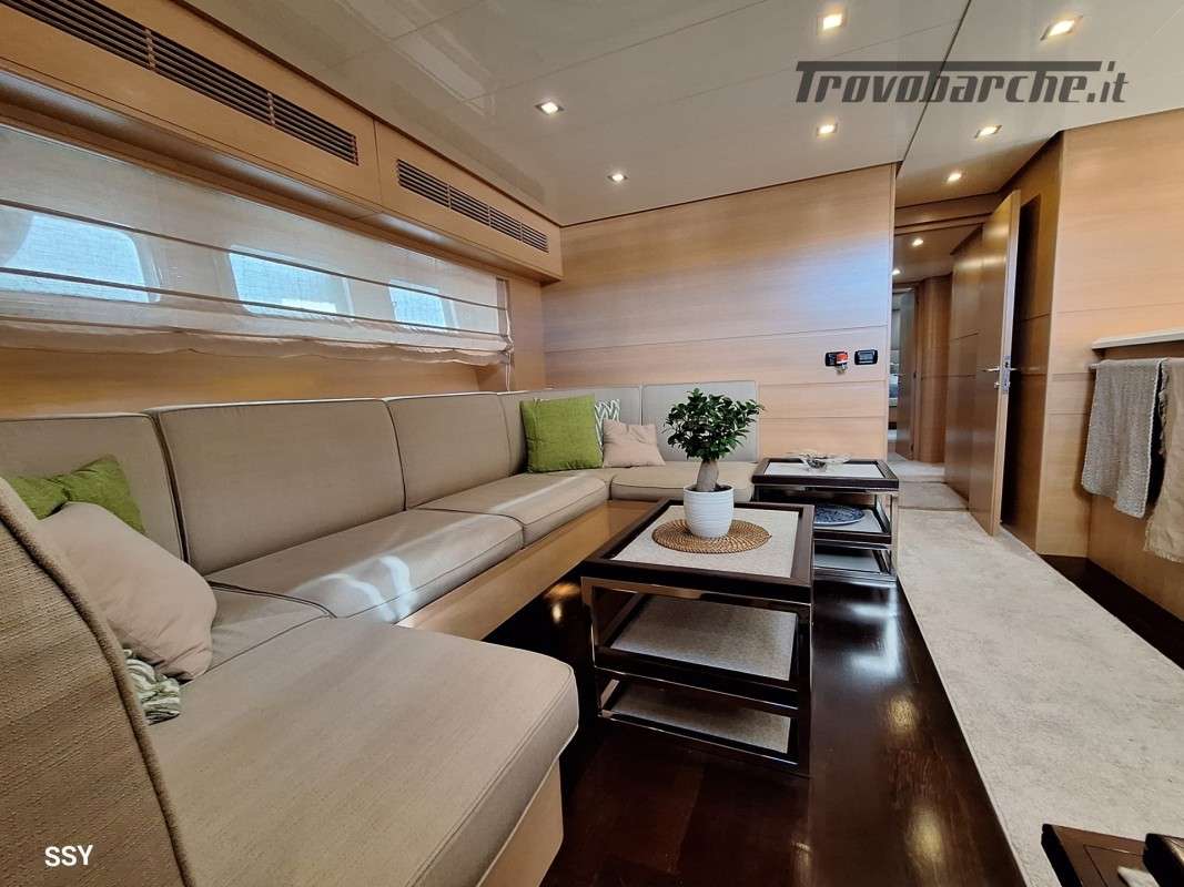 - Ampio salone/zona pranzo con due divani contrapposti e 2 tavoli telescopici per 10pax, smart TV ascomparsa, frigobar in acciaio Frigoboat, plancia comandi;
