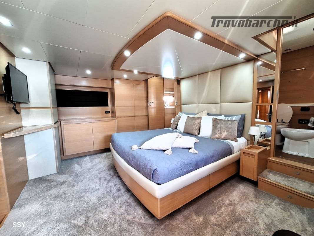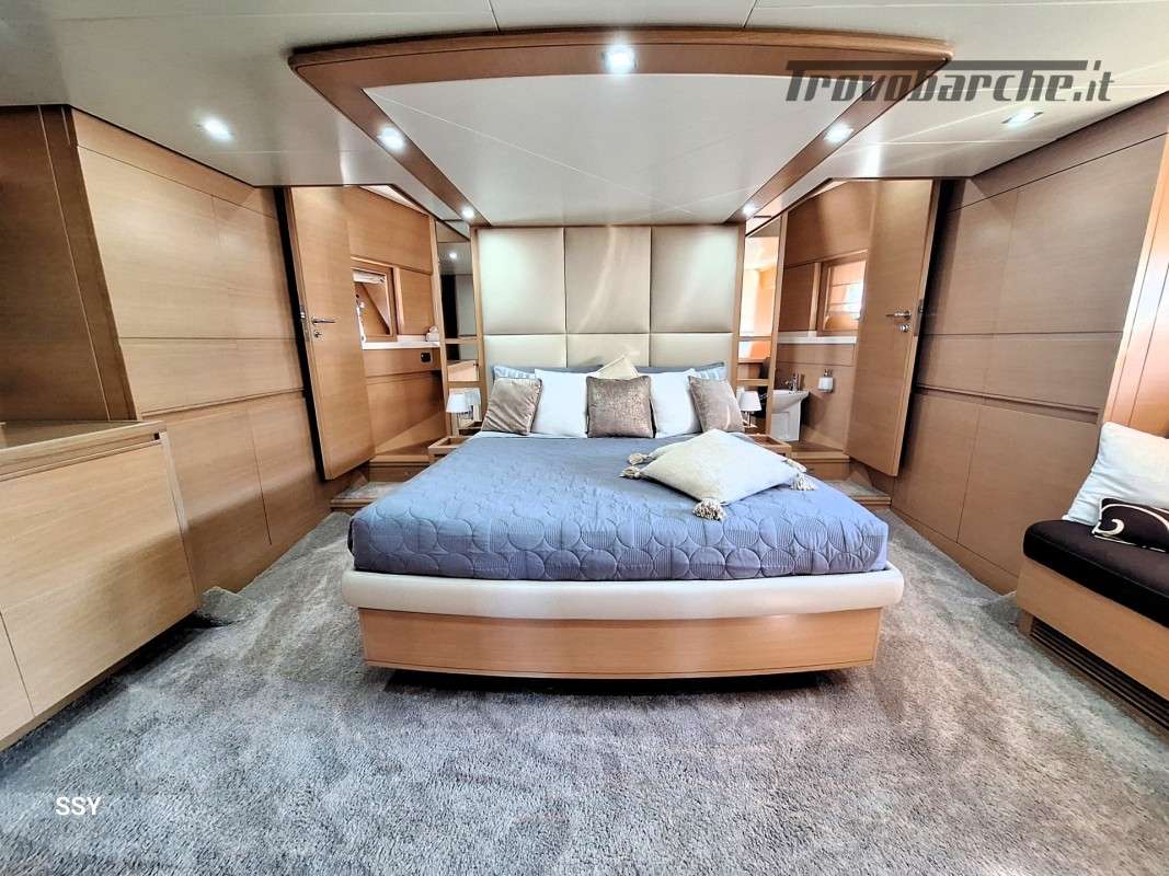 - Ampia cabina armatoriale matrimoniale verso prua, due armadi, smart TV e bagno con doppioaccesso e cabina doccia separata;