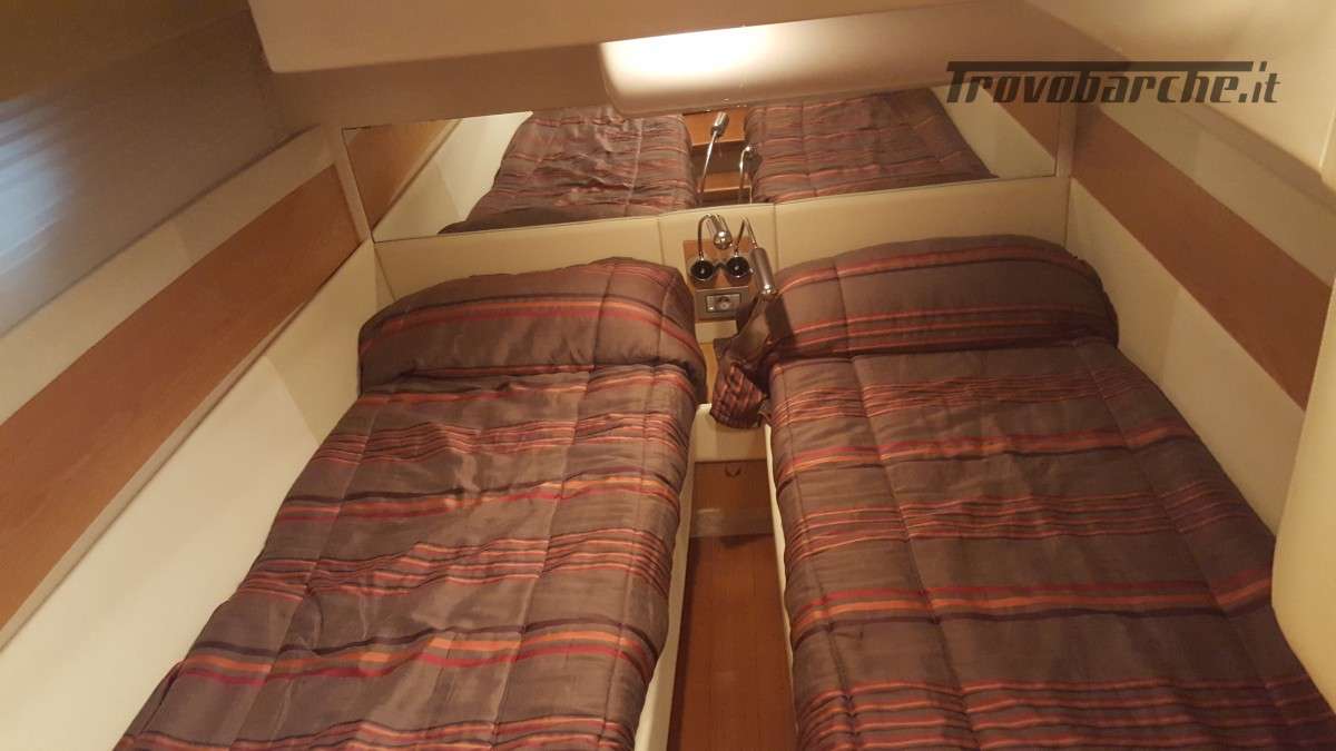 L’ampio layout prevede una camera matrimoniale a prua e due cabine con letti separati, per un totale di 12 persone trasportabili. Inoltre, sono presenti due bagni ben rifiniti, offrendo il massimo della comodità a bordo.