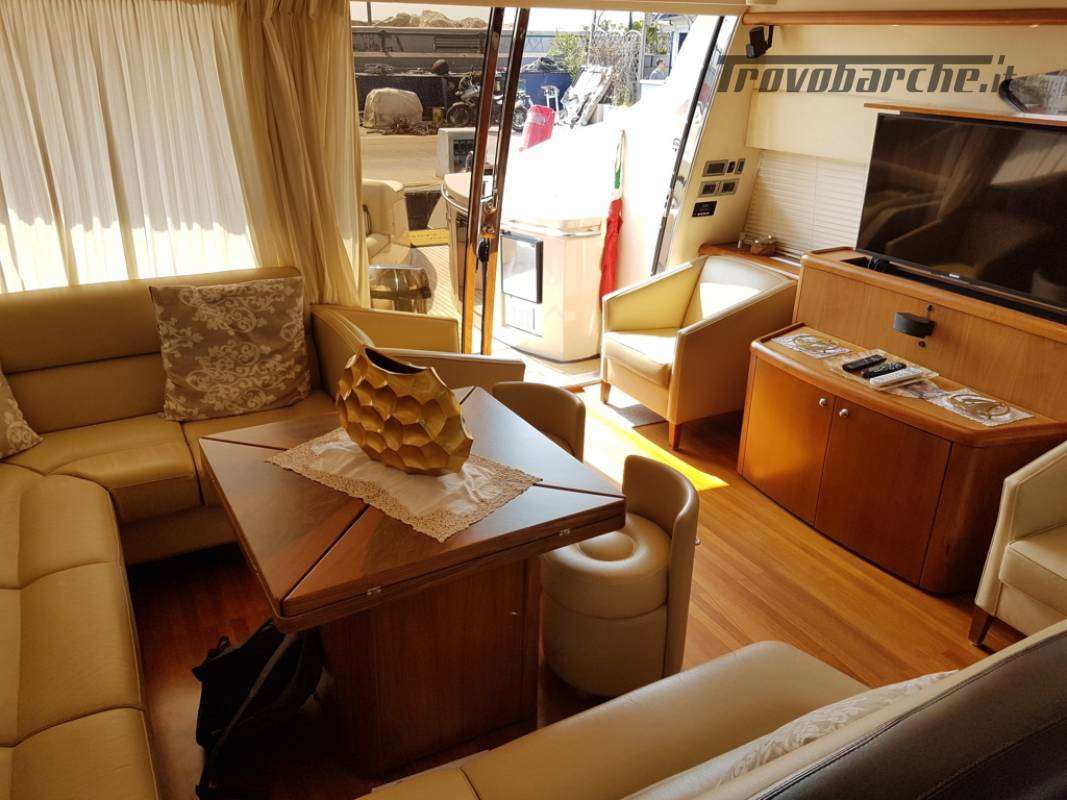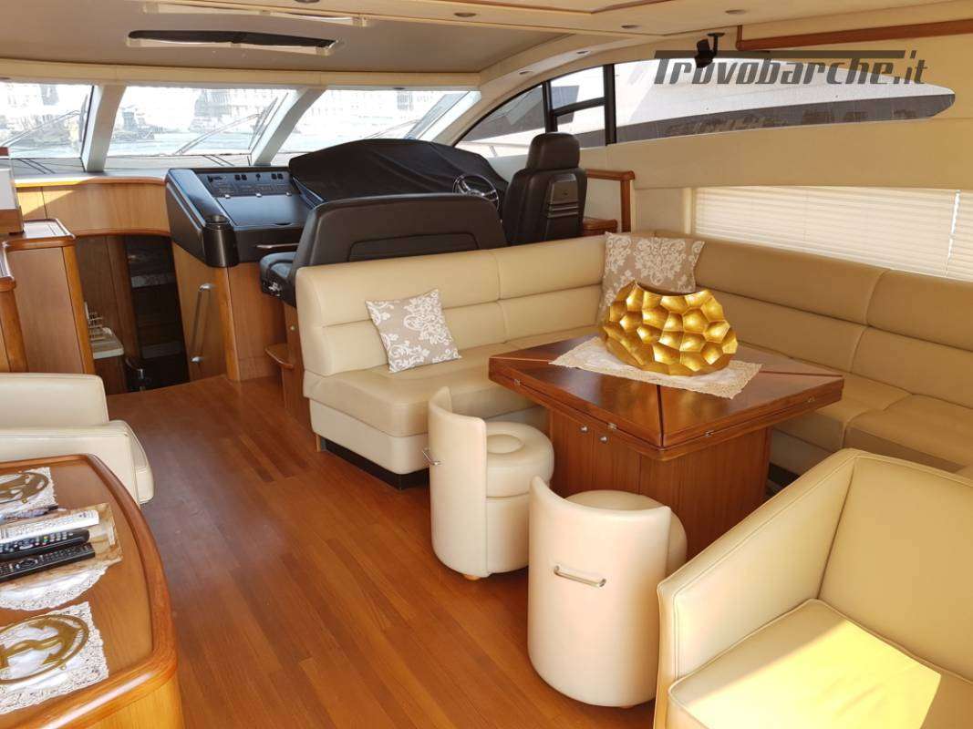 in teak e interni in noce satinato, completi di divani in pelle e parquet in teak.