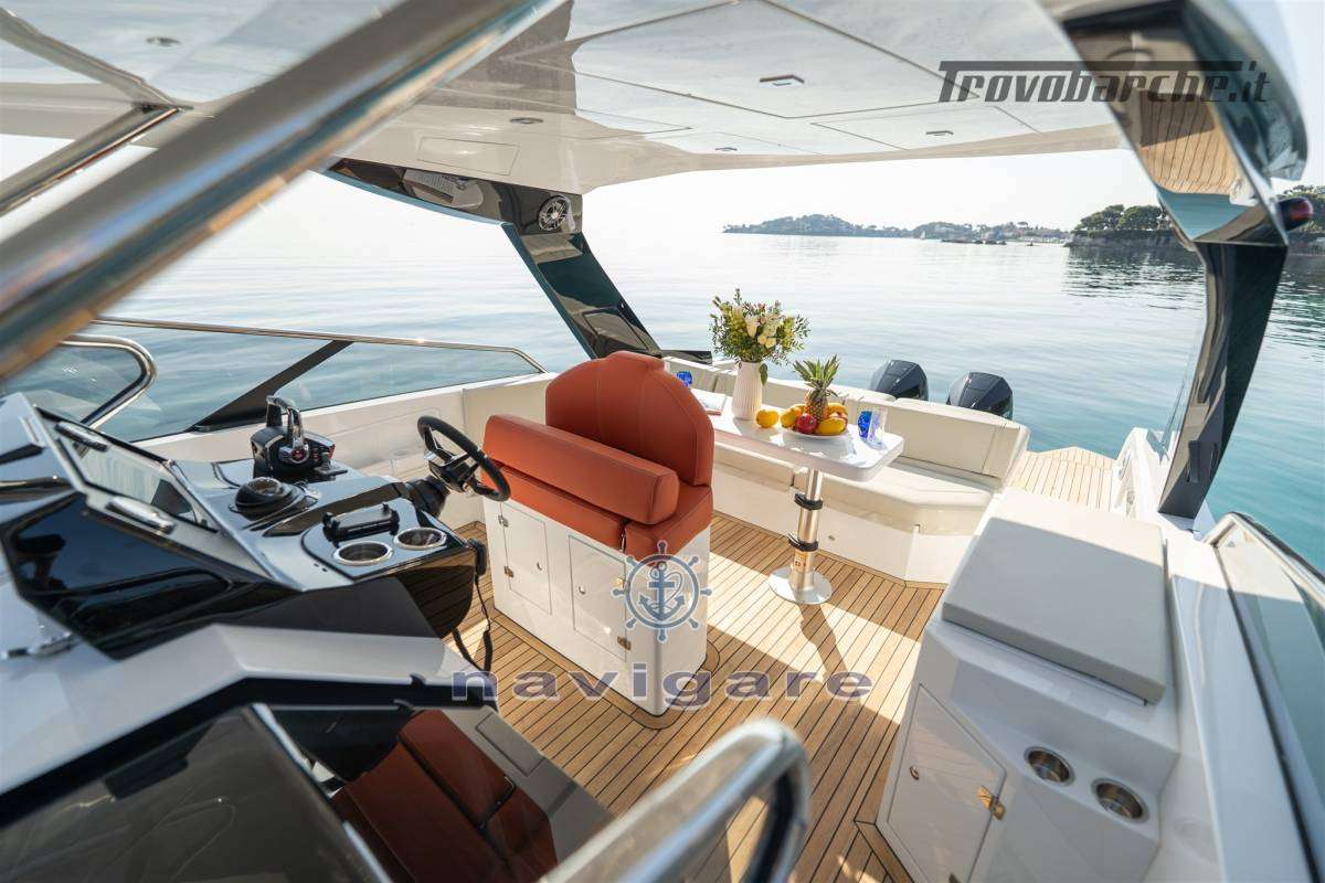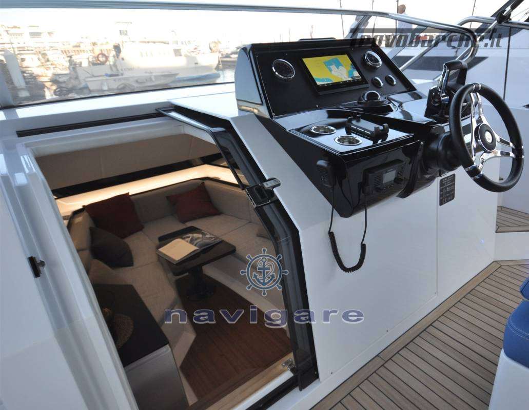 COSTRUZIONE - Componenti in vetroresina costruiti in resina con anima in schiuma sandwich leggera. • Scafo e coperta in gelcoat bianco PROPULSIONE E TIMONERIA • Timoneria elettronica • Acceleratore elettronico di serie • Modalità bassa velocità di serie • Sistema di posizionamento dinamico* • Elica di prua – MaxPower CT80* • Intercettori Humphree X300 • Funzioni di auto-list e virata coordinate per il sistema Humphree*