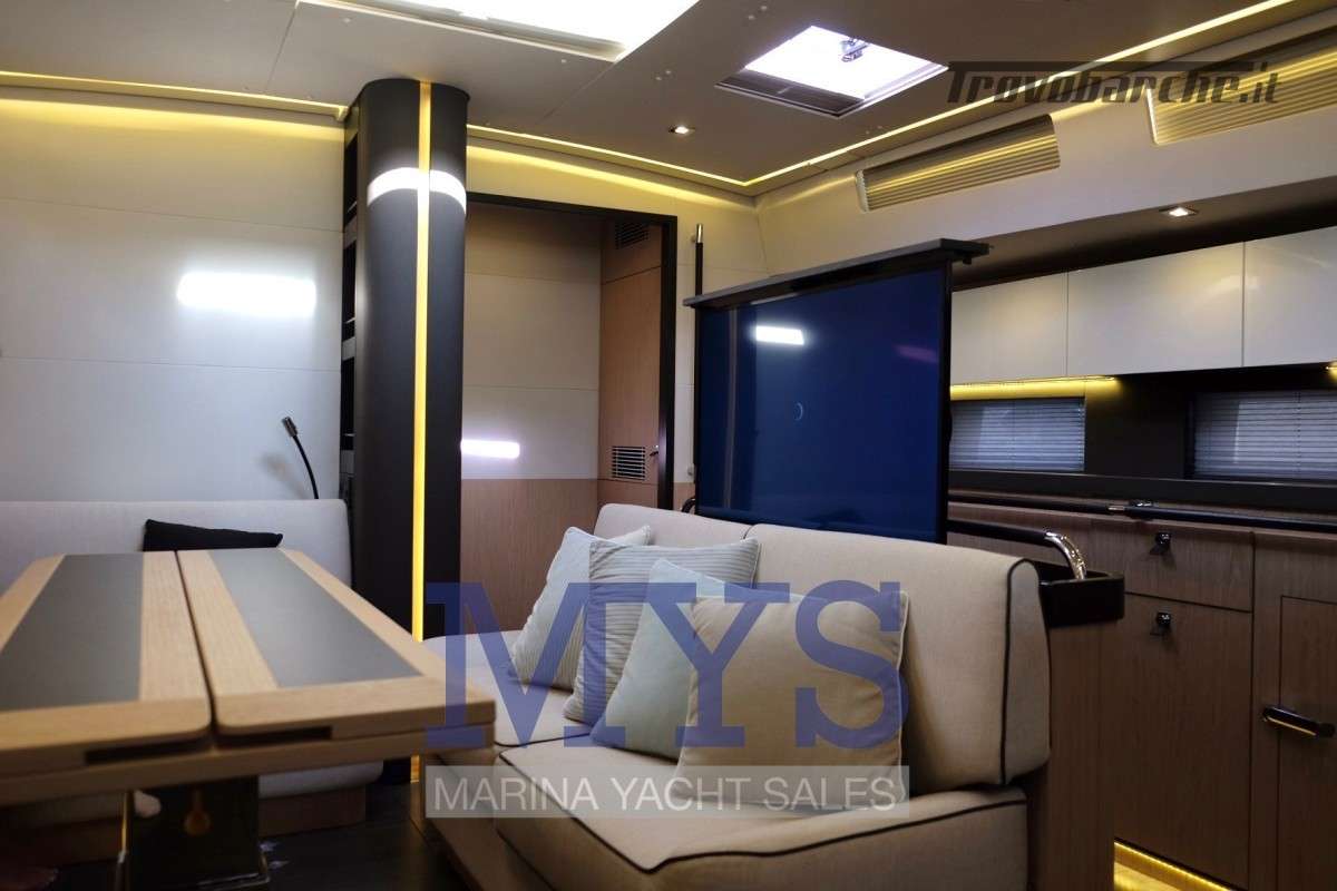 - Finiture pregiate, grande vivibilità, layout fluido, con cabina armatoriale a prua. Ampie finestrature.