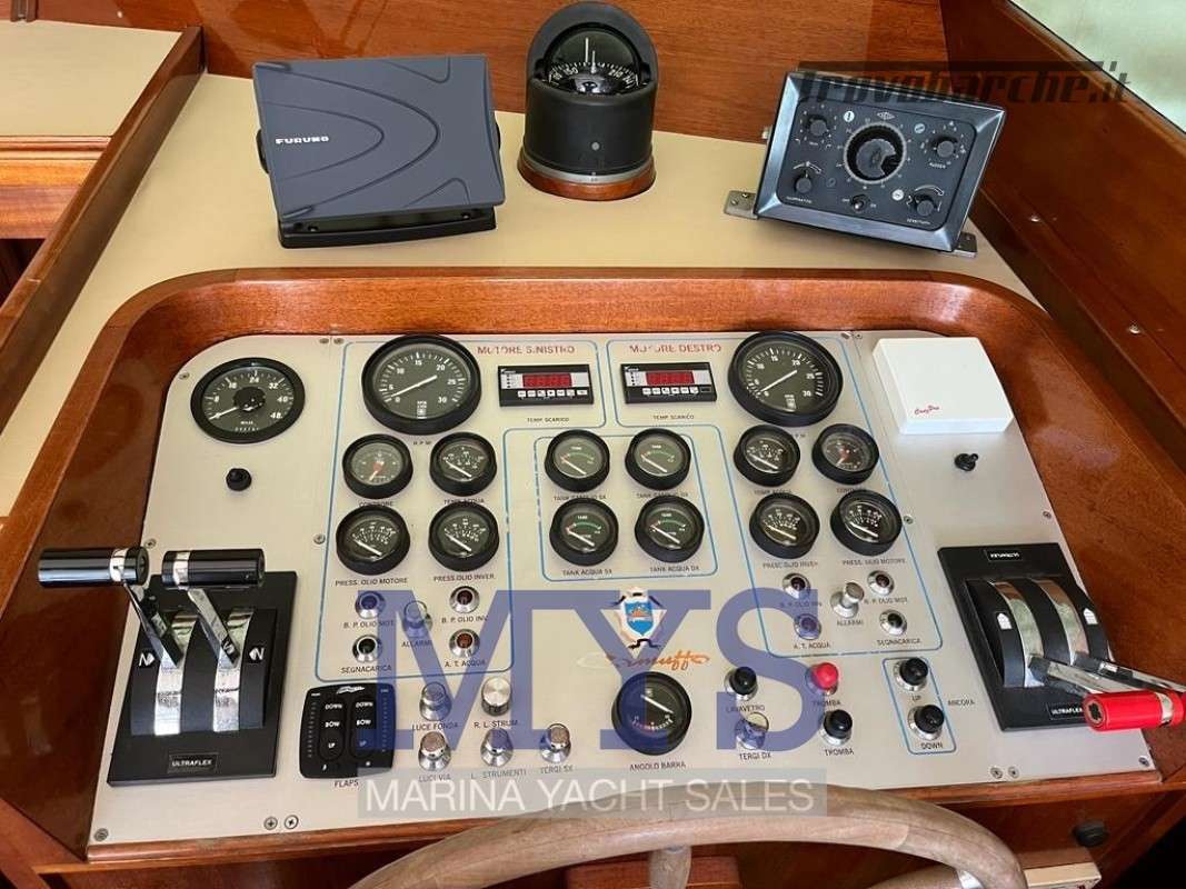 2021: sostituito materasso della cabina armatoriale - nuovo plotter gps - nuovo vhf N°3 - nuova autoclave N°2. Tagliando sostituiti tutti i filtri (carburante e olio) - Zinchi - giranti - riparato Raiser, cambio olio, sostituiti premistoppa passaggio alberi scafo - revisione invertitori con sbarco invertitore DX, montati nuovi RACOR - ripristino completo di tutto il Teack + nuova comenti nuovi - revisione timoneria.Informazioni aggiuntive: Condizioni prezzo: OTTIME CONDIZIONI GENERALI. PER INFORMAZIONI PIETRO VERDI +39 ***; Ancora; Fornello (2); WC marino elettrico; Caricabatterie; Luci di cortesia; Plotter con antenna GPS; Altoparlanti; Tavolo pozzetto; Radio AM/FM; Oscuranti;