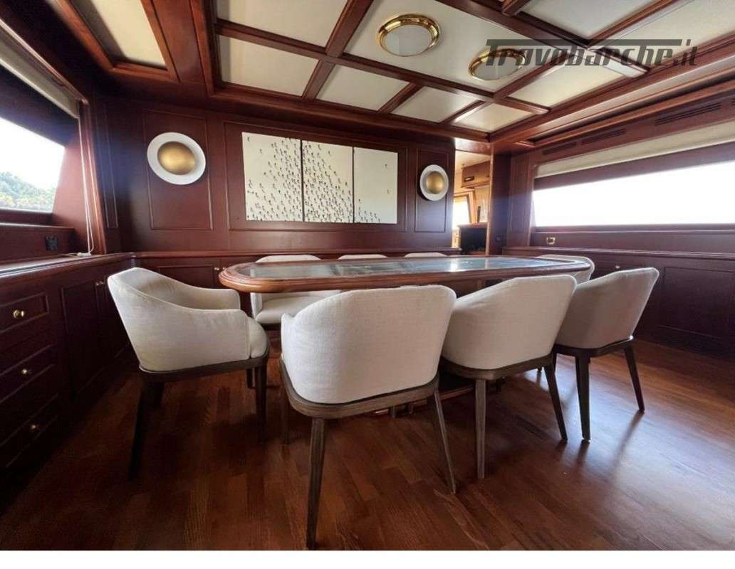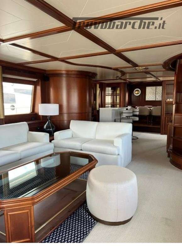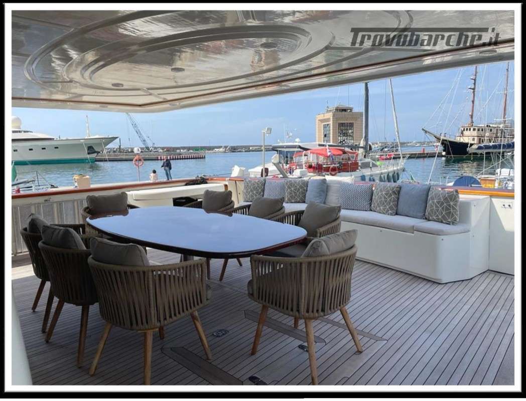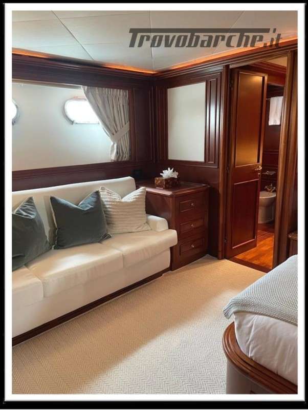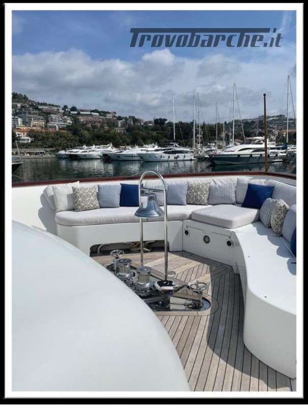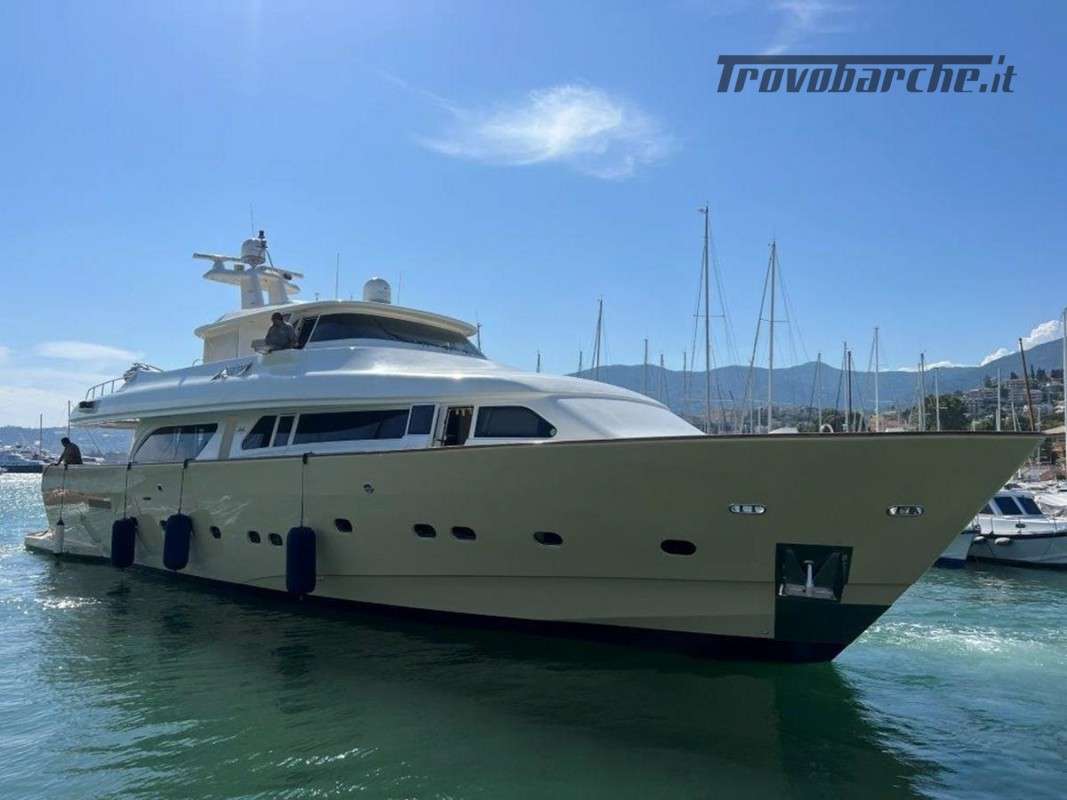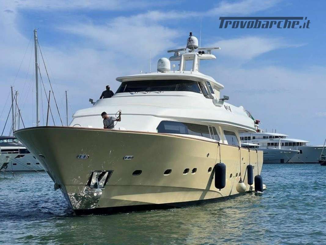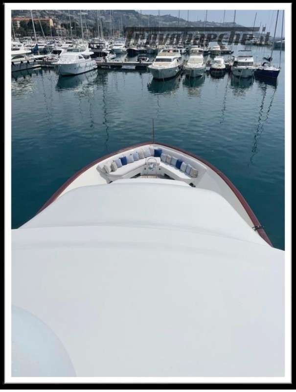 MYEERAH is a 27.45 m Motor Yacht, built in Italy by Custom Line in 2000. It is one of the two Navetta 27 models. Its top speed is 18.0 kn, the cruising speed is 16.0 kn and boasts a maximum cruising range of 1200.0 nm at 15.5 kn, with the power of two MAN diesel engines. It can accommodate up to 8 people, with 4 crew members. It has a gross tonnage of 157.0 GT and a beam of 7.0 meters. It was designed by Zuccon International Project, who also designed the naval architecture and the interiors. 3 main Helm electronic engine control + 2 side wings GARMIN : GPS - autopilot - plotter - radar - VHF radio - copilot seat –touchscreen domotica Teak side walkways - lutdoor shower - stern thruster - bow thruster - fixed stern headlights - adjustable headlight hydraulic flaps - garage for tender garage only jetski and beach club, tender on fly - crane for tender on fly – fire-fighting system - indicators ilaps - chain wash - sink in the cockpit of the fly - courtesy lights - underwater lights - gangway - 2 new sides doors - cockpit teak - socket 220V dock - water dock - stabilizers fins - sockpit table 2 Winch stern fishing - 2 Bow winch with bow Air conditioning – battery charger - BBQ/ Grill - boiler - Reversible climate - water maker - black water system inverter - internal wooden floor - internal sockets 12v - internal sockets 220v - black water tank - 5 electric marine toilets + crew Speakers - satellite antenna TV - DVD - home theater - TV system - lift mechanism for TV in the living room - AM/FM radio - 5 TV Freezer - oven - external refrigerator - internal refrigerator - ICE maker - washer dryer - dishwasher.Informazioni aggiuntive: Gruette per tender; Pozzetto Teak; Stabilizzatori; Ancora; Allarme motore; Fornello; WC marino elettrico (7); Camminamenti laterali in teak; Caricabatterie; Controllo Domotica; Tavolo pozzetto;