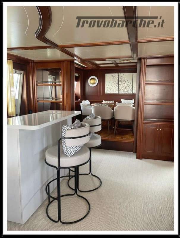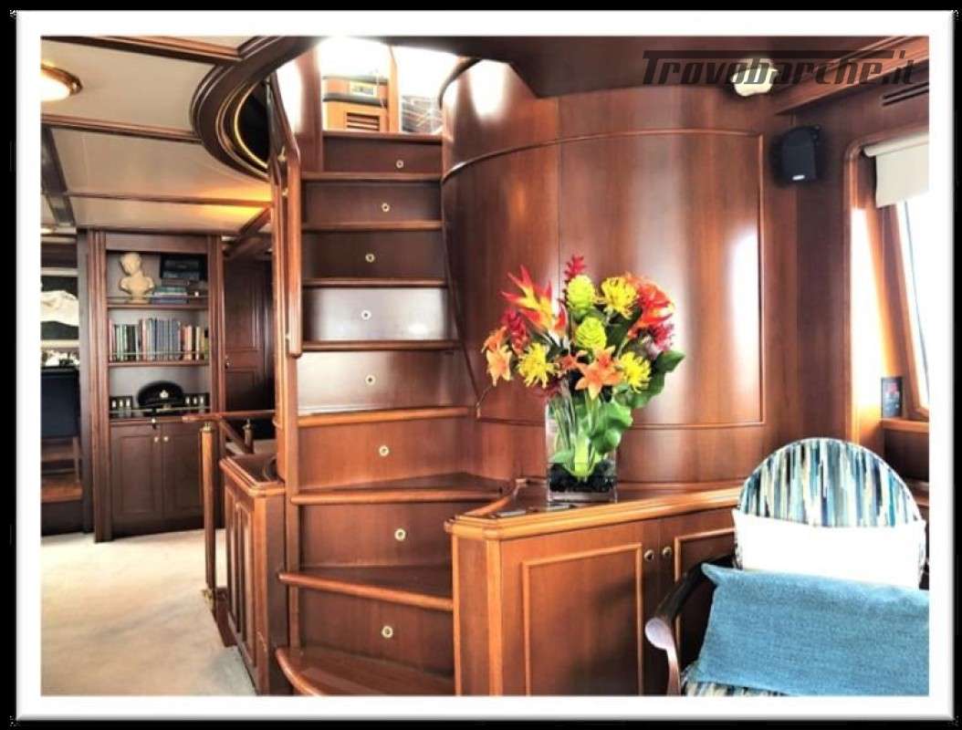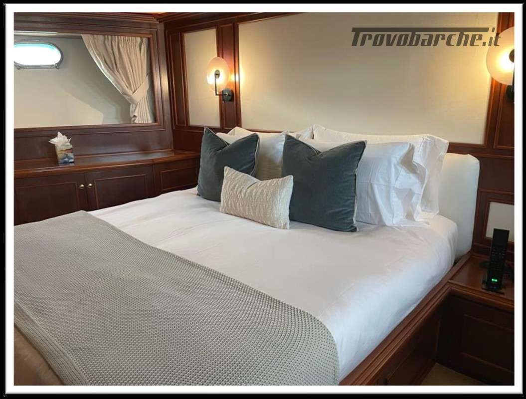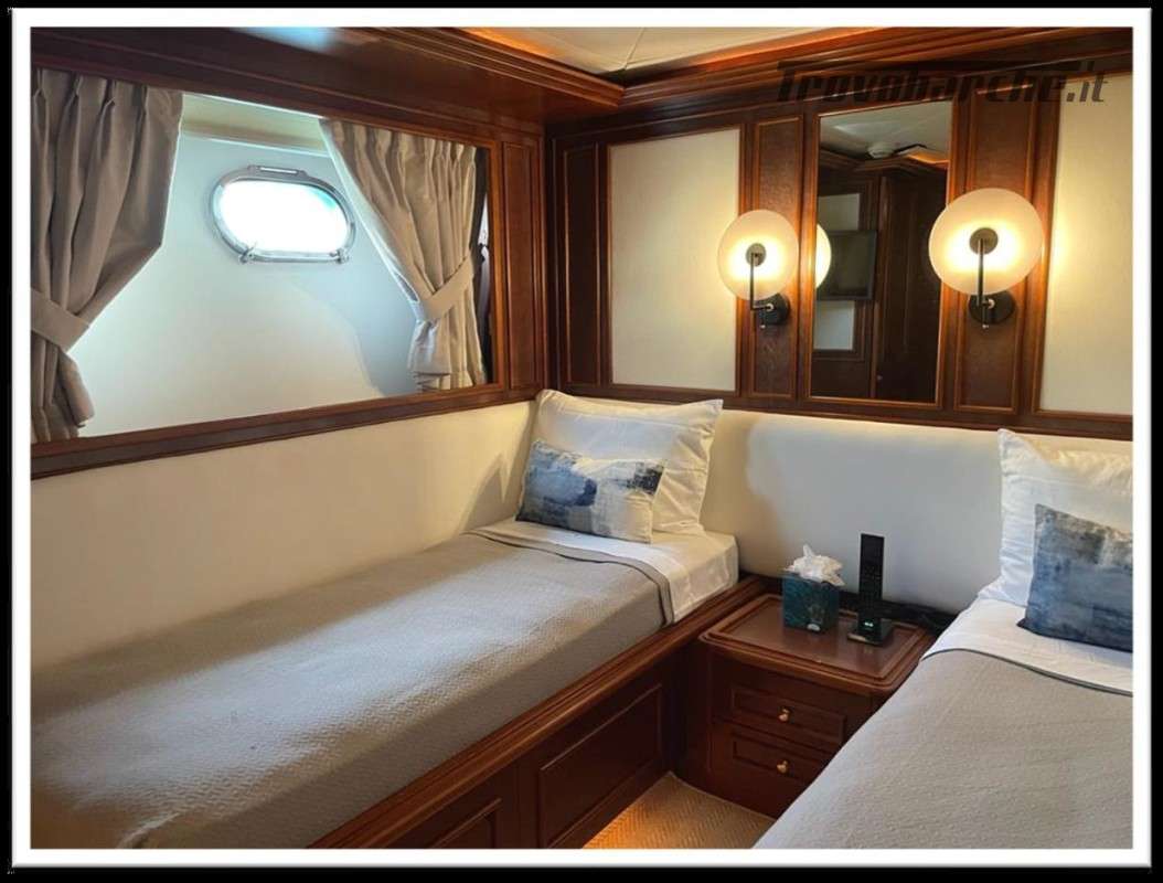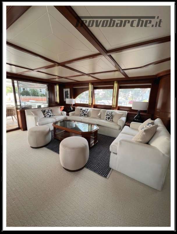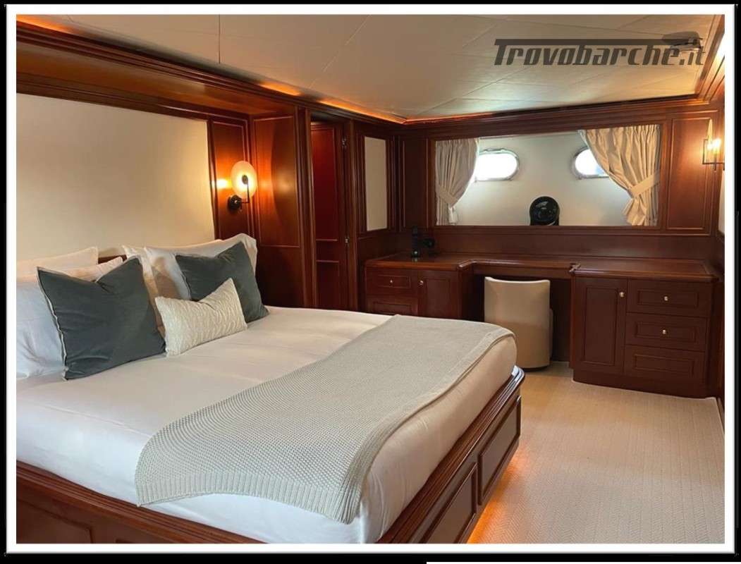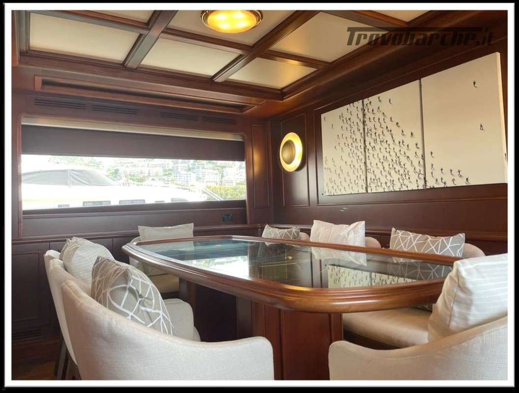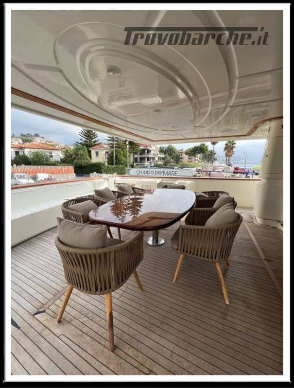 MYEERAH is a 27.45 m Motor Yacht, built in Italy by Custom Line in 2000. It is one of the two Navetta 27 models. Its top speed is 18.0 kn, the cruising speed is 16.0 kn and boasts a maximum cruising range of 1200.0 nm at 15.5 kn, with the power of two MAN diesel engines. It can accommodate up to 8 people, with 4 crew members. It has a gross tonnage of 157.0 GT and a beam of 7.0 meters. It was designed by Zuccon International Project, who also designed the naval architecture and the interiors. 3 main Helm electronic engine control + 2 side wings GARMIN : GPS - autopilot - plotter - radar - VHF radio - copilot seat –touchscreen domotica Teak side walkways - lutdoor shower - stern thruster - bow thruster - fixed stern headlights - adjustable headlight hydraulic flaps - garage for tender garage only jetski and beach club, tender on fly - crane for tender on fly – fire-fighting system - indicators ilaps - chain wash - sink in the cockpit of the fly - courtesy lights - underwater lights - gangway - 2 new sides doors - cockpit teak - socket 220V dock - water dock - stabilizers fins - sockpit table 2 Winch stern fishing - 2 Bow winch with bow Air conditioning – battery charger - BBQ/ Grill - boiler - Reversible climate - water maker - black water system inverter - internal wooden floor - internal sockets 12v - internal sockets 220v - black water tank - 5 electric marine toilets + crew Speakers - satellite antenna TV - DVD - home theater - TV system - lift mechanism for TV in the living room - AM/FM radio - 5 TV Freezer - oven - external refrigerator - internal refrigerator - ICE maker - washer dryer - dishwasher.Informazioni aggiuntive: Gruette per tender; Pozzetto Teak; Stabilizzatori; Ancora; Allarme motore; Fornello; WC marino elettrico (7); Camminamenti laterali in teak; Caricabatterie; Controllo Domotica; Tavolo pozzetto;