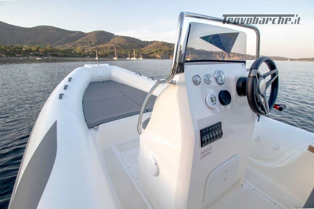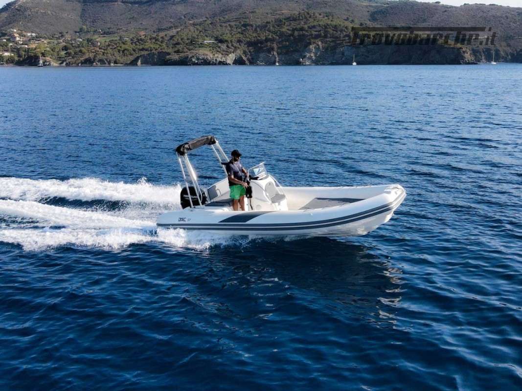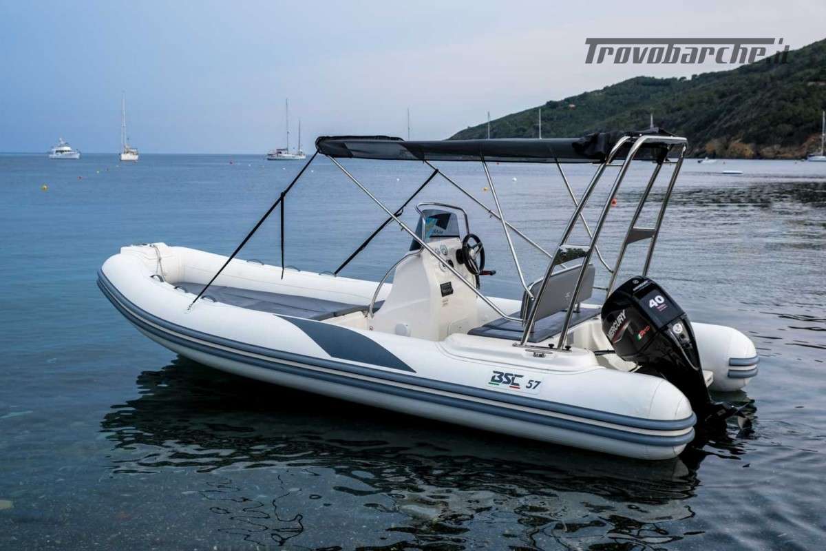 INCLUDING STORAGE OR BUOY 2025 SEASON General Characteristics: Shipyard and model: BSC 57 CLASSIC EDITION Overall length: 5.71 m - Overall width: 2.45 m Dry weight: 520 kg Person capacity: 10 Max engine: 145 HP – 107 kW CE design category: C Tube diameter: 56 cm - Tube compartments: n. 5 Description: Beautiful 57 «Classic edition» inflatable boat designed for family recreational use. The newly designed console features soft lines in harmony with the design of the boat and the driving seat allows you to drive both sitting and standing, or it can be lowered to extend the stern sundeck. Equipment: Bow thruster, mechanical steering, bow lockers and sundeck, complete closed-cell cushions, complete console, seat facing the console, folding stern backrest, stern platforms, towing hooks, water tank, bilge pump, electrical panel, complete electrical system, inflator, boarding ladder, repair kit Options: Fuel tank, hydraulic steering, stainless steel roll bar with black awning, lights for roll bar and horn, shower, console lights, mooring cover, console cover, synthetic covering, electric inflator, fish finder. PACKAGE WITH ENGINE: -SUZUKI DF40 ARI: €27,500.00 + VAT: €33,550.00 -SUZUKI DF 100 B: €31,000.00 + VAT: €37,820.00 Possibility of exchanging your used: Ranieri, Marinello, Jeanneau, Beneteau, Karnic, Mingolla, Idea Marine, AS Marine, Eolo, Trimarchi, Mercury, Honda, Yamaha, Suzuki, Allegra, Cranchi, Sessa, Bavaria Yachts, Sea Ray, Sealine, Fiart, Invictus, Ranieri International, Greenline, Quicksilver, Rinker, Regal, Crownline, Monterey, Bayliner Branch: Moniga del Garda (BS) Aprilia Marittima (UD) *prices are exclusive of VAT and transport - transport costs quote on request. Price List 10-2024 - The price list is intended for illustrative purposes only and does not constitute a contractual document. The shipyard reserves the right to make changes at any time.