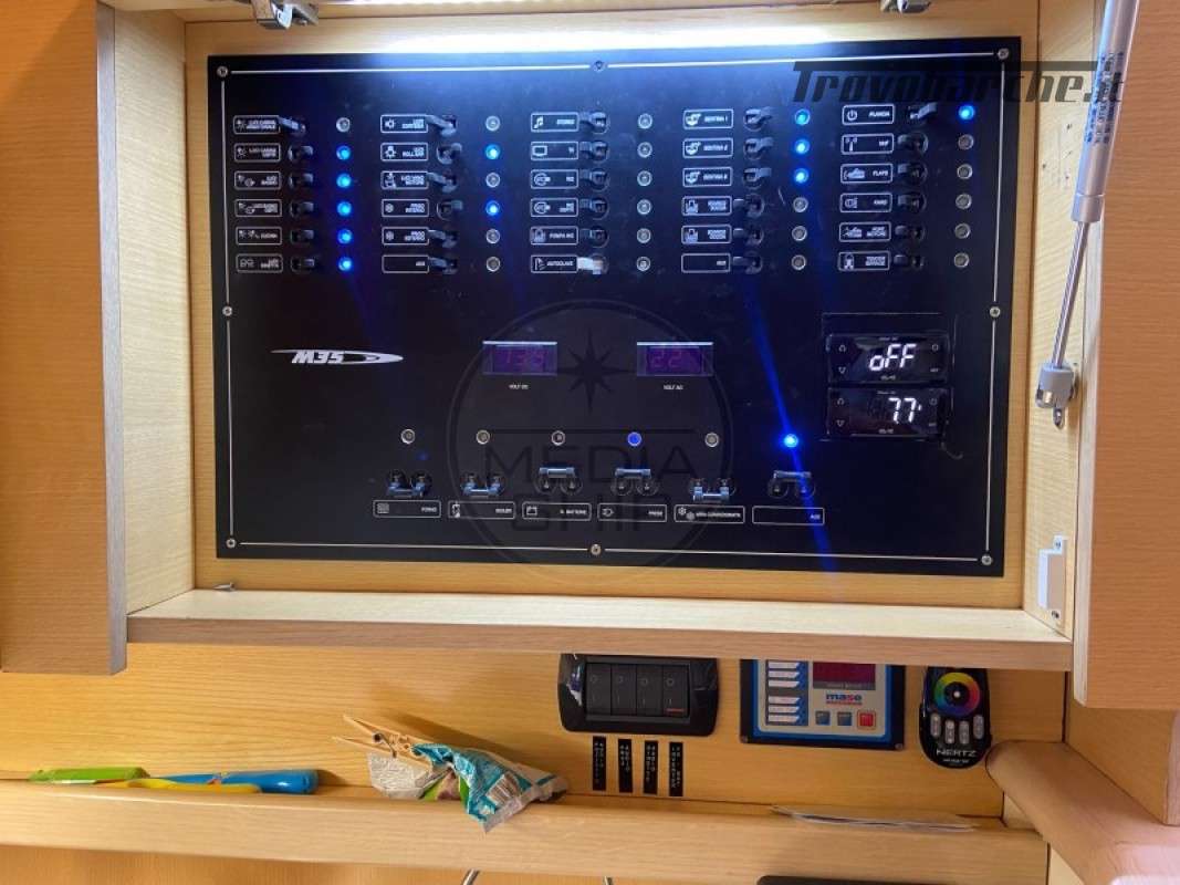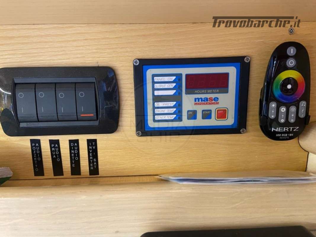 HAND 35, 2010, IMM. 2017, BRONZE HULL, TEAK DECK, 2 x 300 HP Volvo Penta D4, 780 ENGINE HOURS, DIESEL, BOW THRUSTER, 2 CABINS, 2 WC(S), MASE 5.0 GENERATOR, AIR CONDITIONING, SIMRAD ELECTRONICS, MFD, RADAR, AUTOPILOT, SAT TV ANTENNA, ENGINE ROOM VIDEO CAMERA, HYDRAULIC RETRACTABLE BOARDING LADDER, EXTERNAL CUSHIONS, EXTERNAL BOW CUSHIONS, +39 06 65 22 258/9, *** - AD CODE W150163/M The MANÒ 35 “STILE” is a Hard-Top launched in 2010 and registered in 2017 (CE Class B) with 2 furnished cabins with double bed and 2 bathrooms. Very well equipped, it is equipped with: generator, air conditioning, recent Simrad electronics, autopilot, teak deck, satellite TV antenna and television in the dinette, video camera in the engine room, retractable hydraulic gangway, Hi-Fi system with powerful external speakers, double internal/external refrigerator, freezer and gas hob, internal LED lighting, garage for tender, front + rear sundeck, electric awning at the stern, bathing ladder, cushions. In 2022 the headphones were replaced, while in 2021 the trim pipes, the steering system and the foot seals were replaced - Enter MediaShip.it and consult the descriptive sheets, with over 6,000 images and videos, you can book your video visit on board, buy and sell your berth and reserve the best boats and locations for your boating holidays. Additional information: Anchor; Stove; Battery charger; Cockpit table;