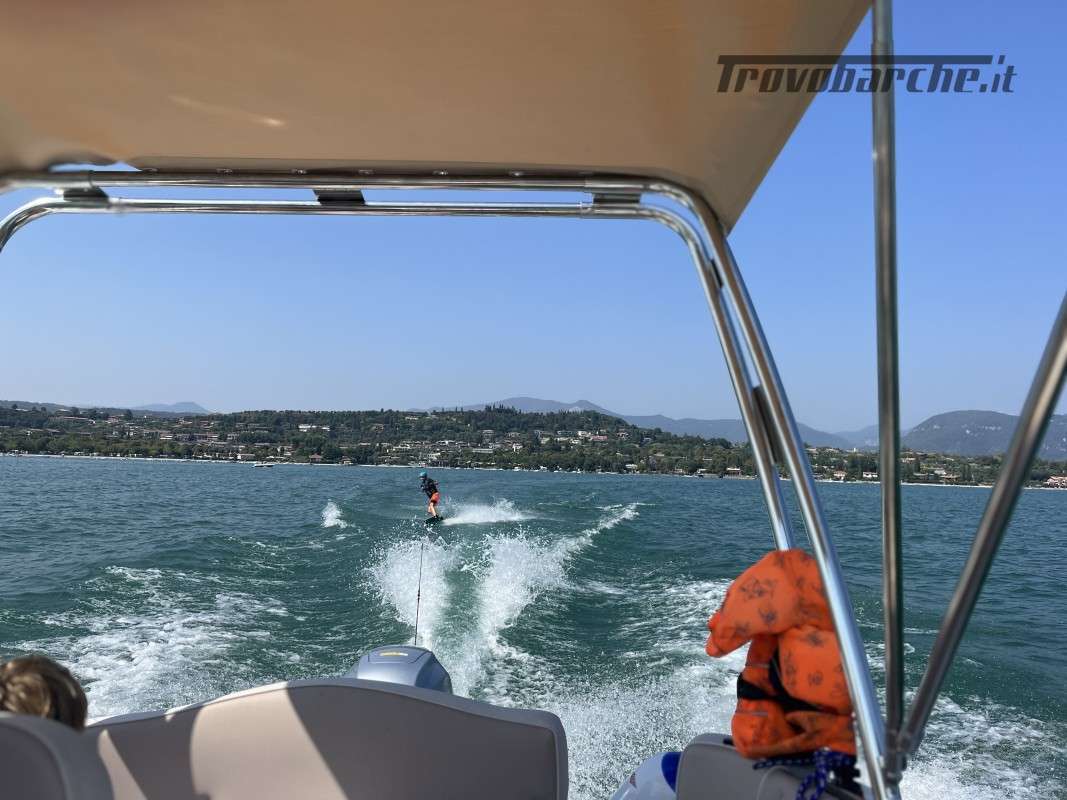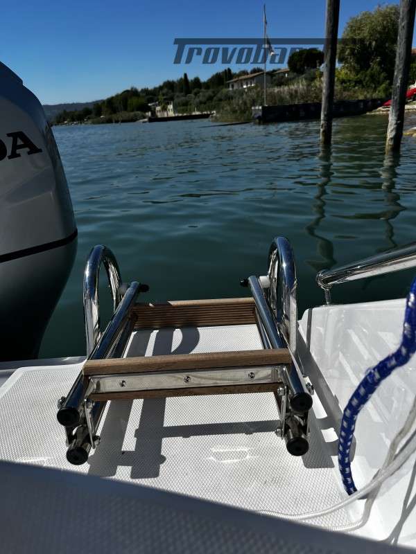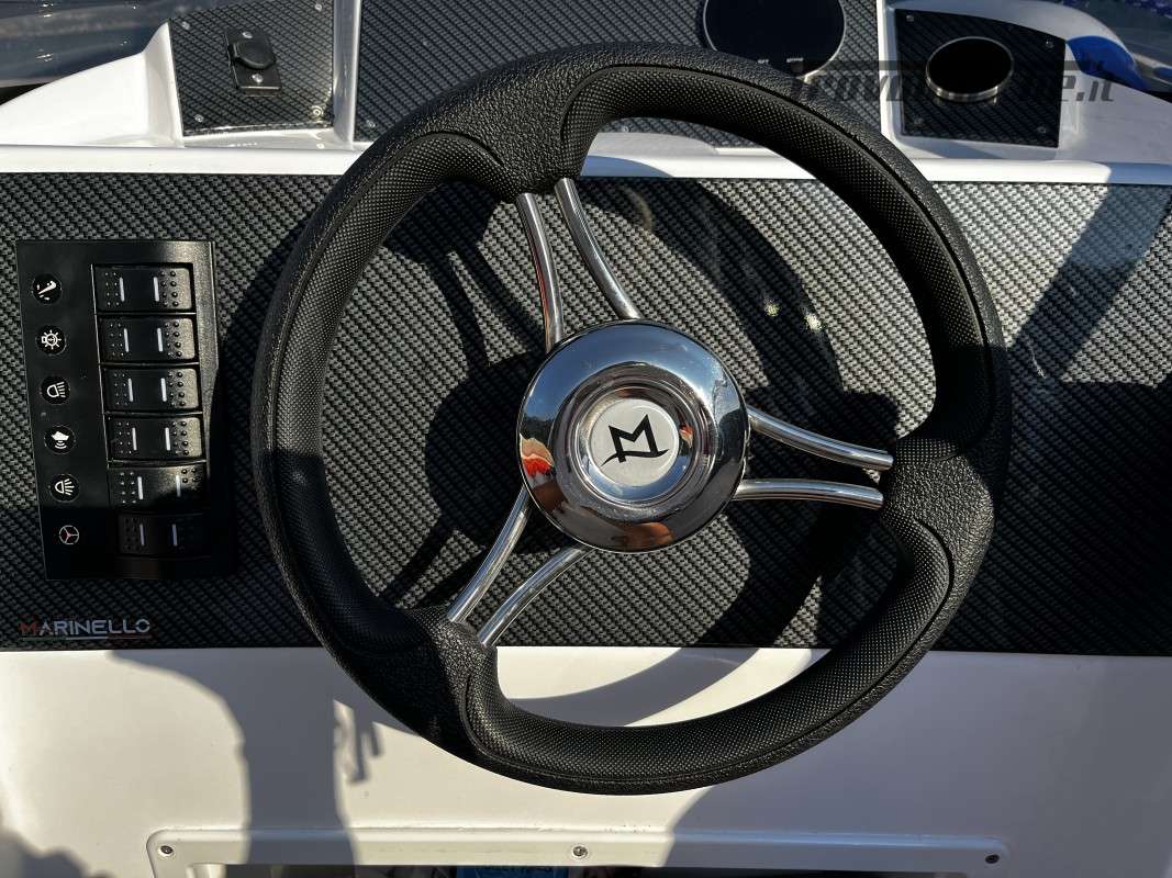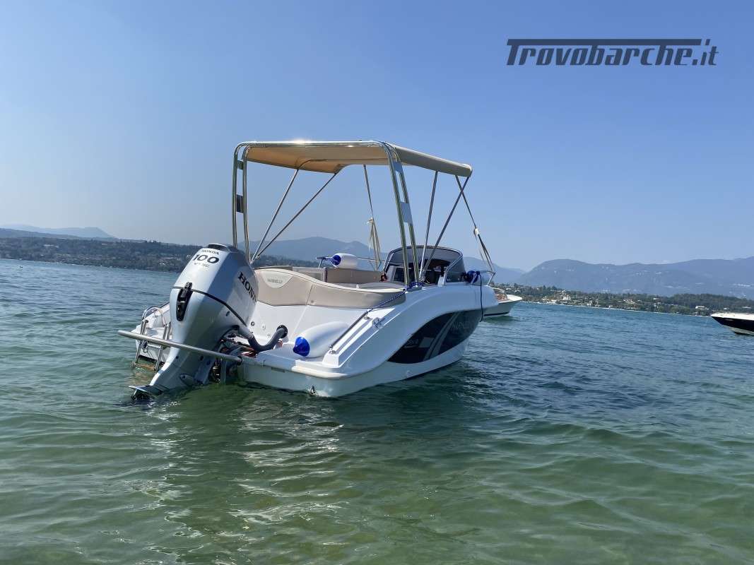 INCLUDING STORAGE AND BUOY 2025 SEASON General Characteristics: Shipyard and model: MARINELLO – Eden 18 Overall length: 5.20 m Width: 2.24 m Capacity: 7 Weight (without engine): 600 kg Engine: Honda BF 100 - Power: 100 HP Fuel: petrol - Fuel tank: 75 lt Year of construction: 2023 CE Category: C Conditions: perfect – like new – stored in shed for winter, used only for a month – selling due to moving abroad Description: This Marinello eden 18 offers comfort and elegance. Its high hull and padded walls make navigation even more stable and safe. The side console on the starboard side allows you to make the most of the large bow sundeck spaces and the addition of the table also makes lunch time unique. At the stern, there is a comfortable U-shaped seat with soft backrests along the entire length. Accessories: Deluxe cushions - stern sundeck extension - 75-liter fuel system with external top-up and indicator - 74Ah battery system with battery switch, box and wiring - steel rollbar with sun awning (Sunbrella) - hull cover - 2 12V sockets - automatic bilge pump - TURBOSWING for steel wakeboards. Visible: Lake Garda *Price net of commission. The prices shown on the data sheet are purely indicative and do not constitute a contractual obligation. The images are for illustrative purposes and may differ from the original. No guarantee for typos and omissions.