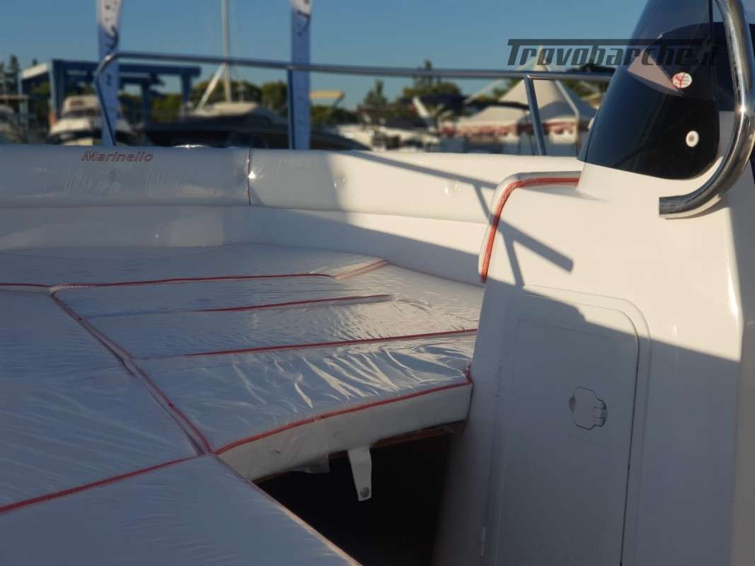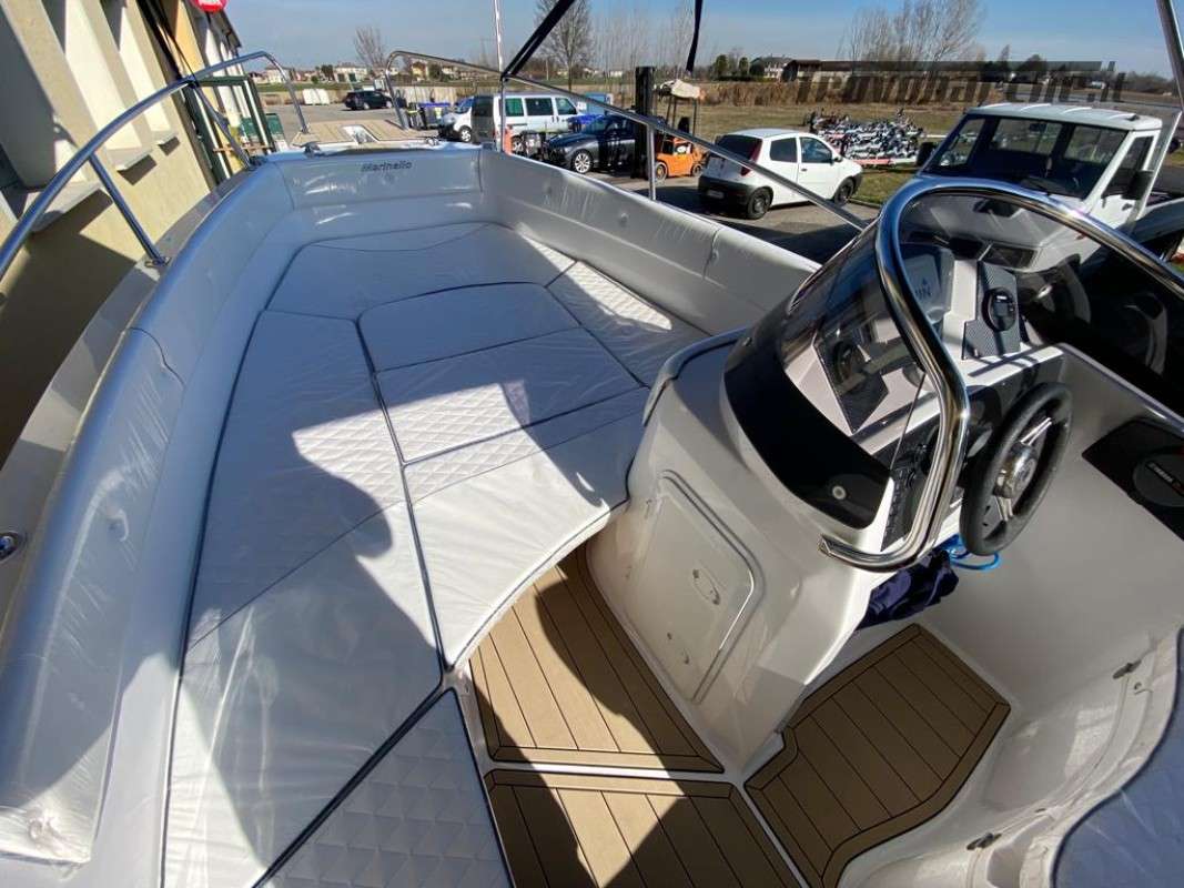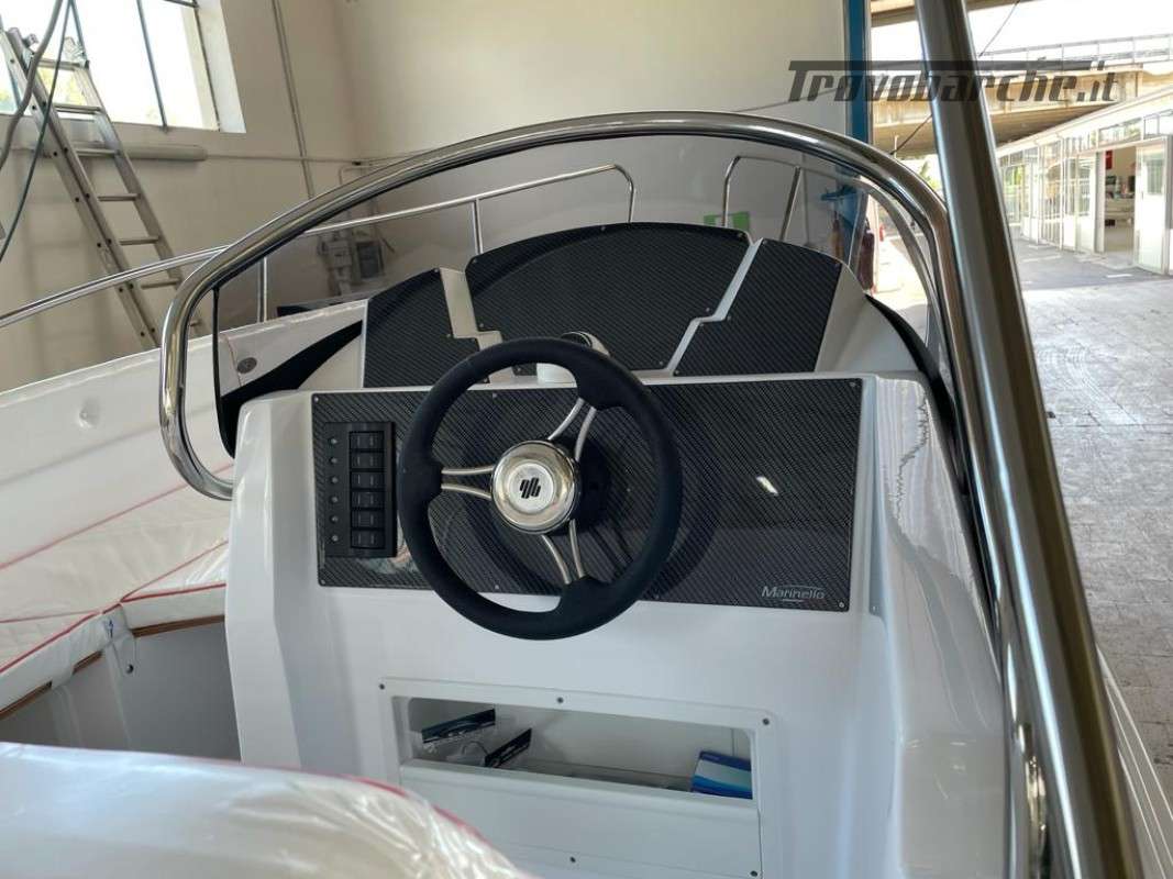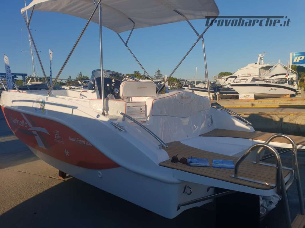 INCLUDING BUOY AND STORAGE 2025 SEASON General Characteristics: Shipyard and model: MARINELLO – Eden 590 Overall length: 5.90 m Width: 2.35 m Capacity: 7 Weight (without engine): 720 kg Maximum power: 115 HP CE Category: C Beautiful spacious open boat designed by the Italian shipyard Marinello, characterized by its modern design, square at the bow and with the side console, this boat is perfect for families who want maximum comfort on board. Thanks to its numerous cushions it can be defined as multifunctional and offers numerous seating and sunbathing options: at the bow a large sunbed that extends up to the console, at the stern two seats or a second large sunbathing area can be created and on the port side a comfortable dining table or additional seats can be placed also in this position. Extra equipment included in the price - De Luxe: Extra equipment included: Color range - Complete de Luxe cushions, bowsprit, extra long bathing platforms, Teak covering for platforms and bowsprit, wired panel, stern sundeck extension, Standard accessories: windshield, steering wheel, exhaust bushings, eyebolts, cleats, fairlead, single cable, door, rubber fender, navigation lights, bow and stern handrails, sundeck table, boarding ladder Extra options on request: refrigerator, electric anchor winch, steel roll bar, sun awning, shower system, table, stereo, hull cover, console cover, GPS Package with engine: -Mercury F40 ELPT EFI PRO: €26,500.00 + VAT: €32,330.00 -Mercury F80 EFI: €29,000.00 + VAT: €32,330.00 -Mercury F80 EFI: €29,000.00 + VAT: €32,330.00 VAT: €35,380.00 - Honda BF 100A K1 LR TU V-TEC: €29,900.00 + VAT: €36,478.00 Financing: From €361 /month *APR 5.96% - APR 6.47% Subject to approval by the finance company. E.g.: Marinello 590 De Luxe + Mercury F40 ELPT EFI PRO. PRICE: €20,500 + VAT (List Price €23,930 + VAT) Possibility of exchanging your used boat: Ranieri, Marinello, Jeanneau, Beneteau, Karnic, Mingolla, Idea Marine, AS Marine, Eolo, Trimarchi, Mercury, Honda, Yamaha, Suzuki, Allegra, Cranchi, Sessa, Bavaria Yachts, Sea Ray, Sealine, Fiart, Invictus, Ranieri International, Greenline, Quicksilver, Rinker, Regal, Crownline, Monterey