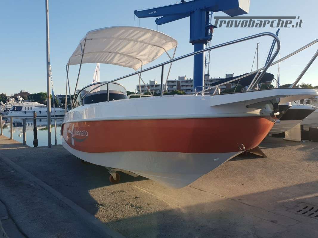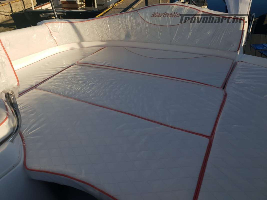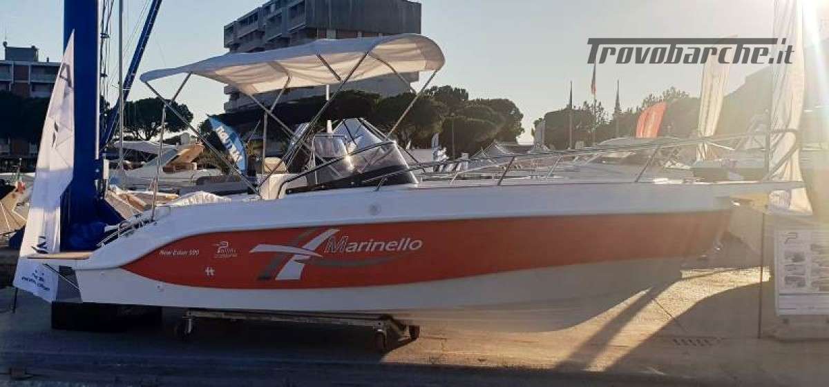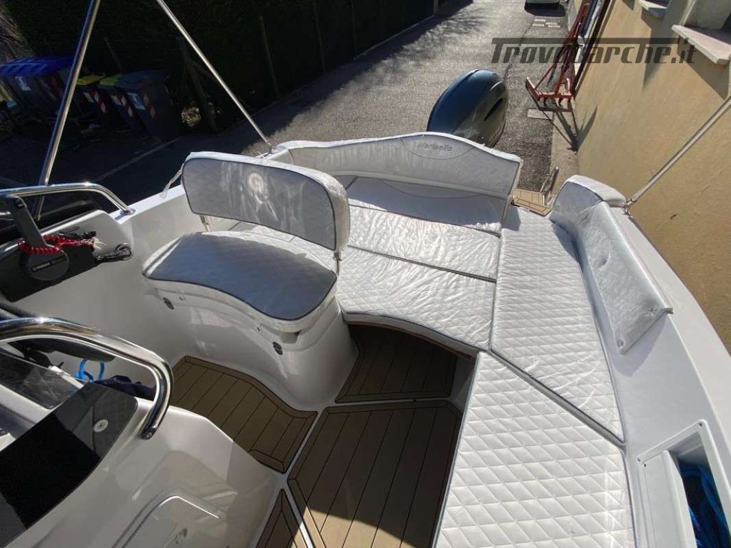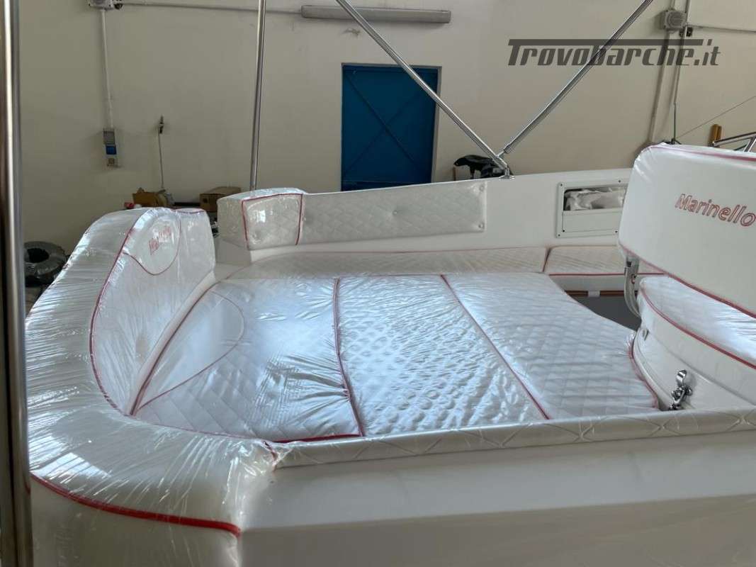 INCLUDING BUOY AND STORAGE 2025 SEASON General Characteristics: Shipyard and model: MARINELLO – Eden 590 Overall length: 5.90 m Width: 2.35 m Capacity: 7 Weight (without engine): 720 kg Maximum power: 115 HP CE Category: C Beautiful spacious open boat designed by the Italian shipyard Marinello, characterized by its modern design, square at the bow and with the side console, this boat is perfect for families who want maximum comfort on board. Thanks to its numerous cushions it can be defined as multifunctional and offers numerous seating and sunbathing options: at the bow a large sunbed that extends up to the console, at the stern two seats or a second large sunbathing area can be created and on the port side a comfortable dining table or additional seats can be placed also in this position. Extra equipment included in the price - De Luxe: Extra equipment included: Color range - Complete de Luxe cushions, bowsprit, extra long bathing platforms, Teak covering for platforms and bowsprit, wired panel, stern sundeck extension, Standard accessories: windshield, steering wheel, exhaust bushings, eyebolts, cleats, fairlead, single cable, door, rubber fender, navigation lights, bow and stern handrails, sundeck table, boarding ladder Extra options on request: refrigerator, electric anchor winch, steel roll bar, sun awning, shower system, table, stereo, hull cover, console cover, GPS Package with engine: -Mercury F40 ELPT EFI PRO: €26,500.00 + VAT: €32,330.00 -Mercury F80 EFI: €29,000.00 + VAT: €32,330.00 -Mercury F80 EFI: €29,000.00 + VAT: €32,330.00 VAT: €35,380.00 - Honda BF 100A K1 LR TU V-TEC: €29,900.00 + VAT: €36,478.00 Financing: From €361 /month *APR 5.96% - APR 6.47% Subject to approval by the finance company. E.g.: Marinello 590 De Luxe + Mercury F40 ELPT EFI PRO. PRICE: €20,500 + VAT (List Price €23,930 + VAT) Possibility of exchanging your used boat: Ranieri, Marinello, Jeanneau, Beneteau, Karnic, Mingolla, Idea Marine, AS Marine, Eolo, Trimarchi, Mercury, Honda, Yamaha, Suzuki, Allegra, Cranchi, Sessa, Bavaria Yachts, Sea Ray, Sealine, Fiart, Invictus, Ranieri International, Greenline, Quicksilver, Rinker, Regal, Crownline, Monterey