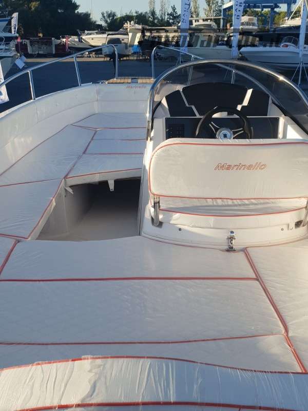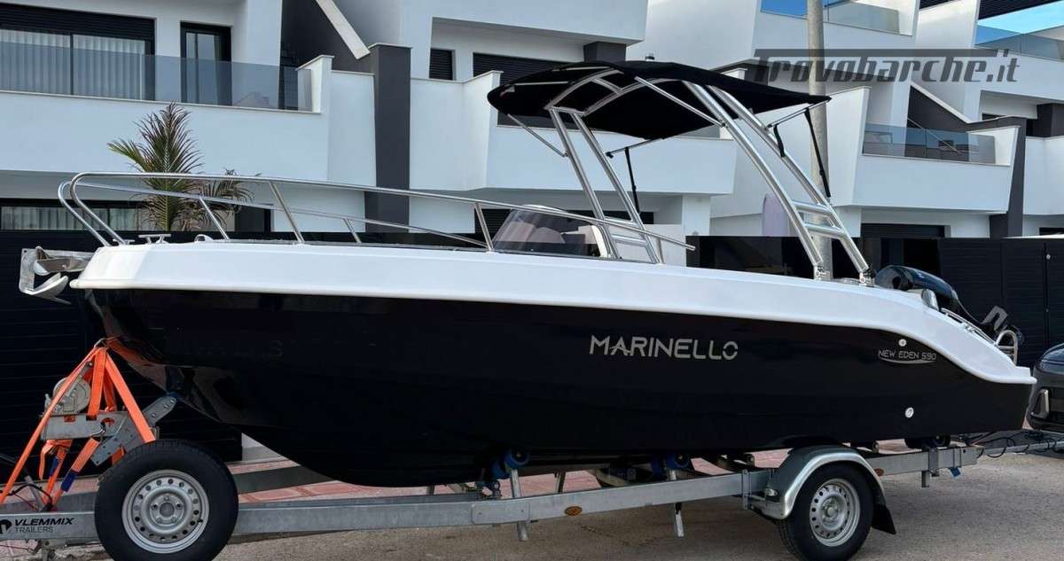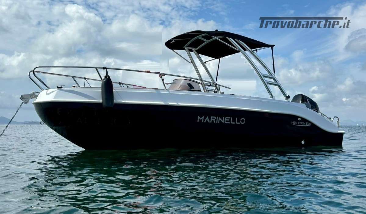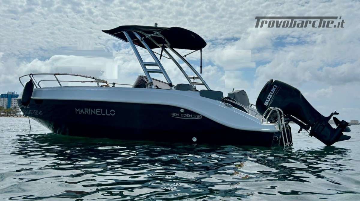 Shipyard and model: MARINELLO – Eden 590 Length ft: 5.90 m Width: 2.35 m Capacity: 7 Weight (without engine): 720 kg Max power: 115 HP CE Category: C Description: Beautiful spacious open boat designed by the Italian shipyard Marinello, characterized by its modern design, squared at the bow and with the side console, this boat is perfect for families who want maximum comfort on board. Thanks to its numerous cushions it can be defined as multifunctional and offers numerous seating and sunbathing options: at the bow a large sunbed that extends to the console, at the stern two seats or a second large sunbathing area can be created and on the port side a comfortable dining table or additional seats can be placed also in this position. Standard accessories: windshield, steering wheel, exhaust bushings, eyebolts, cleats, fairlead, single cable, door, rubber fender, navigation lights, bow and stern handrails, sunbathing table, boarding ladder NOTE: illustration with Monster Tower for Wakeboard to be quoted extra Optional extras on request: refrigerator, electric windlass, steel Roll Bar, sun awning, shower system, table, stereo, hull cover, console cover, GPS Price: € 15,950.00 + VAT (list price: € 17,490.00 + VAT) Package with engine: MERCURY F40 EFI ELPT PRO € 22,400.00 + VAT = € 27,328.00 SUZUKI DF40 ARI € 22,000.00 + VAT = € 26,840.00 SUZUKI DF 80 A €24,700.00 + VAT = €30,134.00 SUZUKI DF 100 B €25,700.00 + VAT = €31,354.00 *prices excl. VAT - Price list 10-2024 - The price list is intended for illustrative purposes, it does not constitute a contractual document, the shipyard reserves the right to make changes at any time.