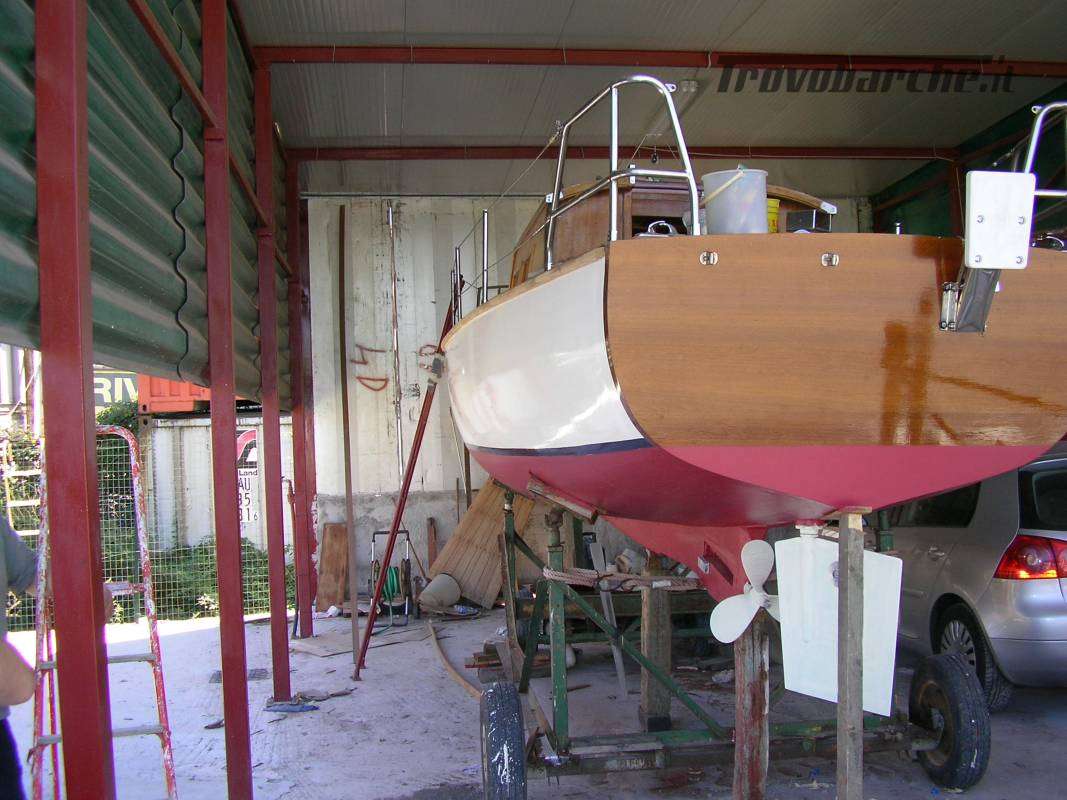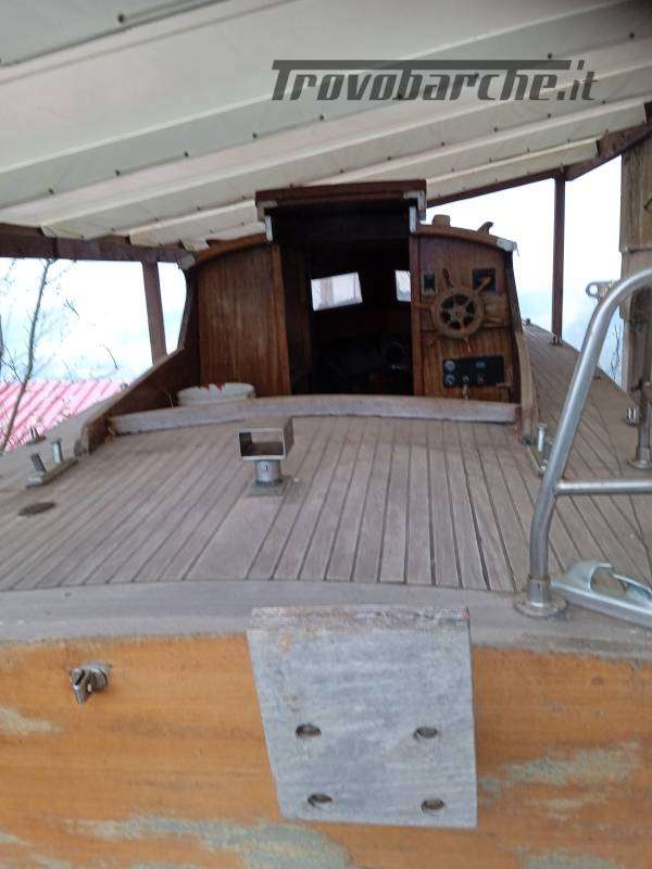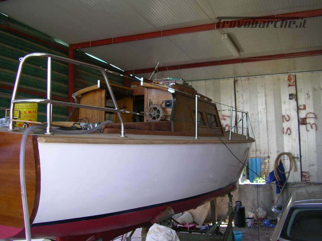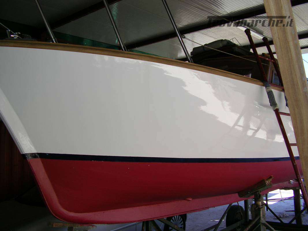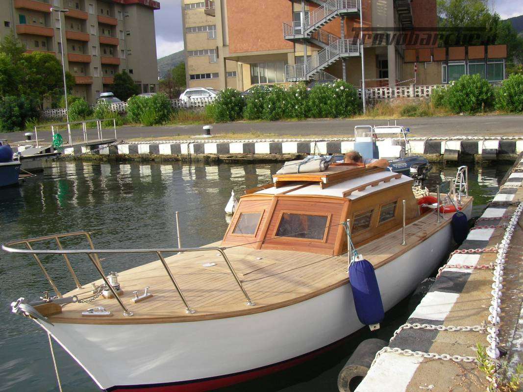 Wooden motorboat. It has been sitting idle for several years and needs maintenance. a Massa-Carrara