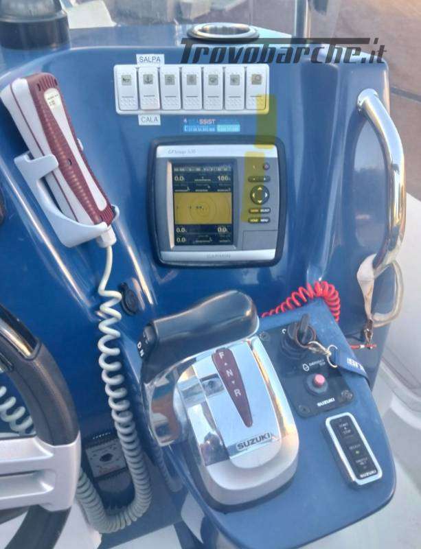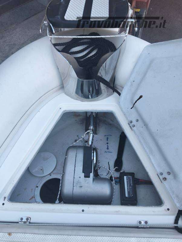 A bordo troviamo una dotazione completa pensata per rendere ogni uscita pratica e piacevole: GPS, ecoscandaglio, contamiglia, bussola, contagiri, autoradio, pulsantiera comandi, luci di navigazione e doccino con acqua dolce. Tra gli accessori spicca il salpa ancora elettrico con telecomando, un plus molto apprezzato per la comodità durante le soste in rada. Gli armamenti includono un ampio tendalino per la poppa con estensione fino a prua, dotato di solido telaio in acciaio inox, e un comodo tavolo centrale per pranzi e momenti di relax a bordo.