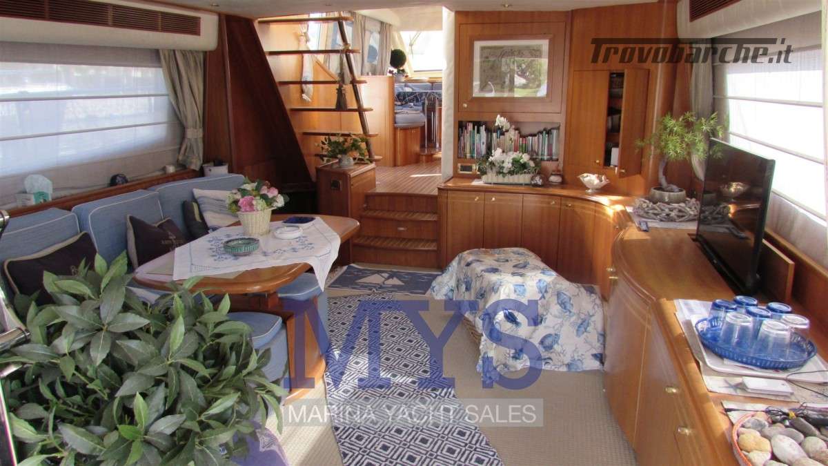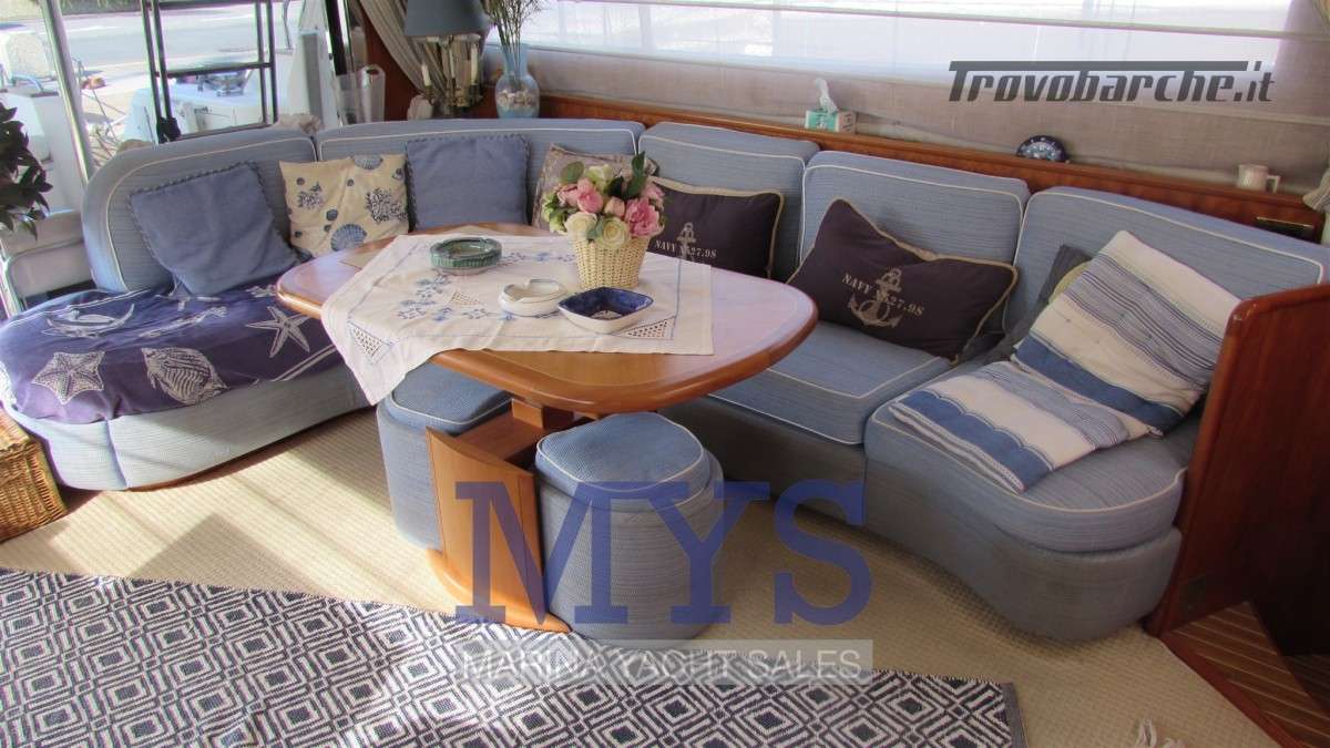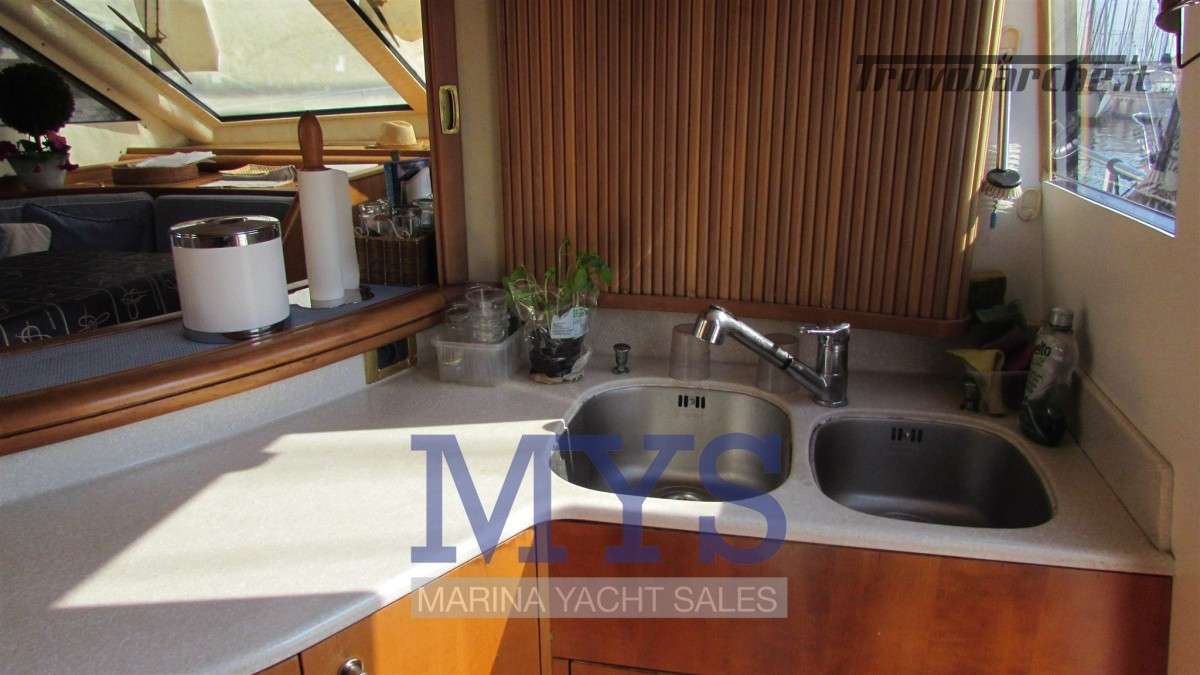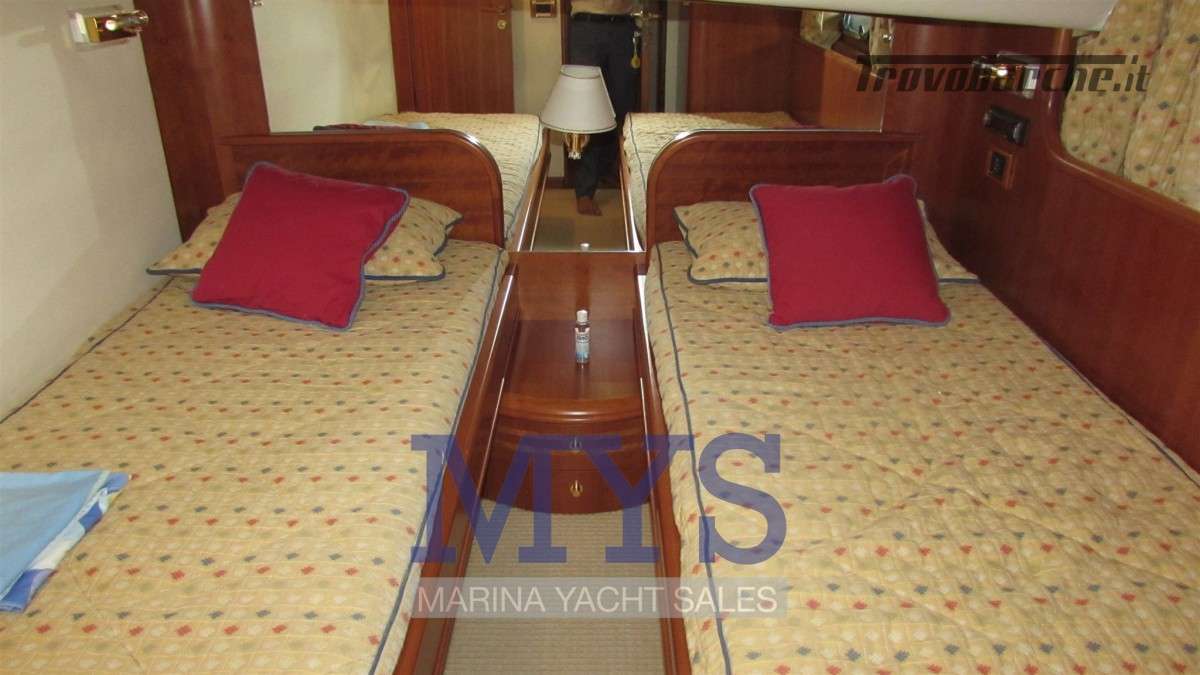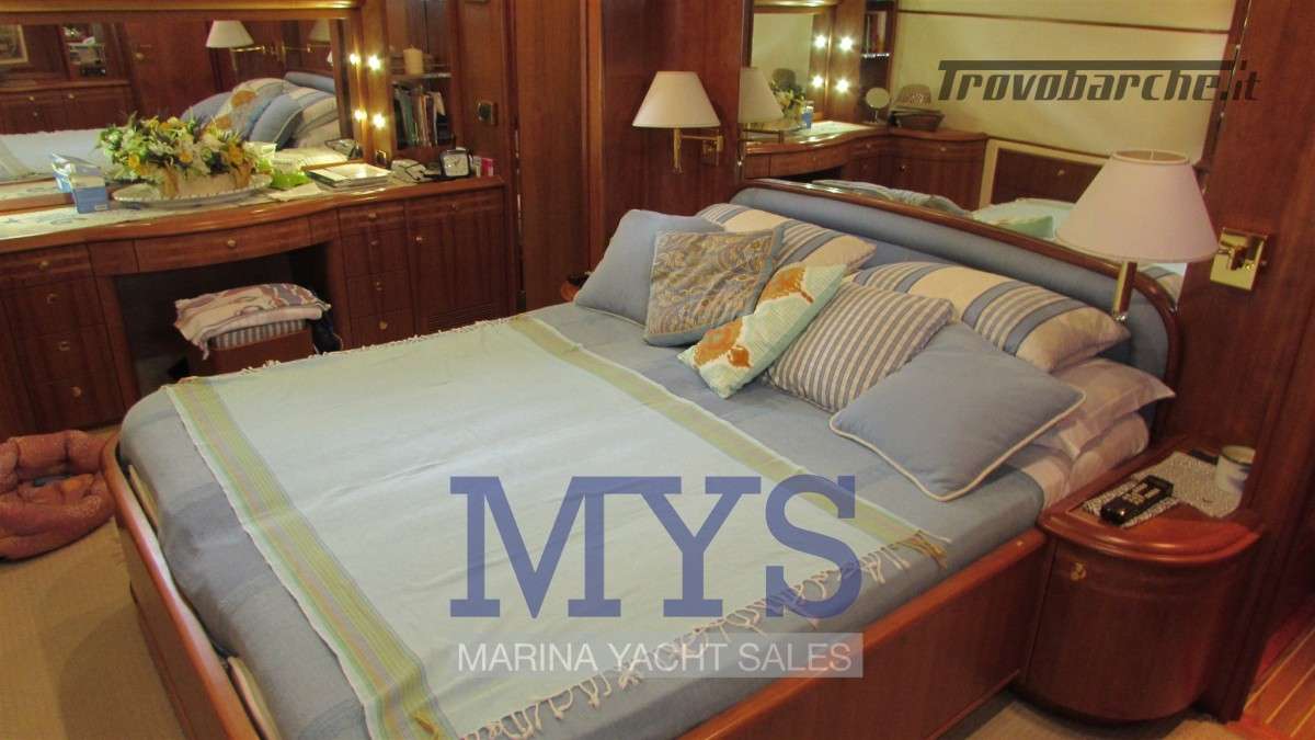 Sistema di ventilazione sala macchine.Informazioni aggiuntive: Condizioni prezzo: BUONE CONDIZIONI GENERALI; Cassaforte; Cuscineria Pozzetto; Pozzetto Teak; Tromba; Allarme motore; Telo copriconsolle; Fornello; Indicatori Flaps; WC marino elettrico (4); Camminamenti laterali in teak; Porta ingresso; Porta laterale (2); Caricabatterie (2); Luci subacquee; Sistema Depurazione acque nere; Antenna Satellitare TV; BBQ/ Grill; Display; Luci di cortesia; Antenna radar; Plotter con antenna GPS; Presa acqua banchina; Gruette per tender su fly; Altoparlanti; Tavolo pozzetto; AIS; DSC vhf; Comando motori elettronico (3); Winch Elettrico (2); Radio AM/FM; Ripetitore strumentazione (3);