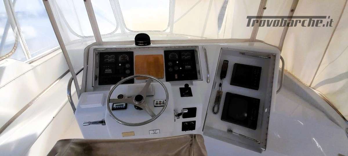 Si informa che i dati comunicati dal proprietario sono ritenuti corretti ma non garantiti e non contrattuali. Le fotografie utilizzate, se indicato, possono essere di repertorio.Informazioni aggiuntive: Gruette per tender; Ancora; Allarme motore; Teli chiusura T-Top; Indicatori Flaps; Outriggers; Porta laterale; Caricabatterie; Luci di cortesia; Antenna radar; Plotter con antenna GPS; Piastra in vetroceramica; Altoparlanti; Comando motori elettronico (3); Sedile Copilota; Selle per Tender;