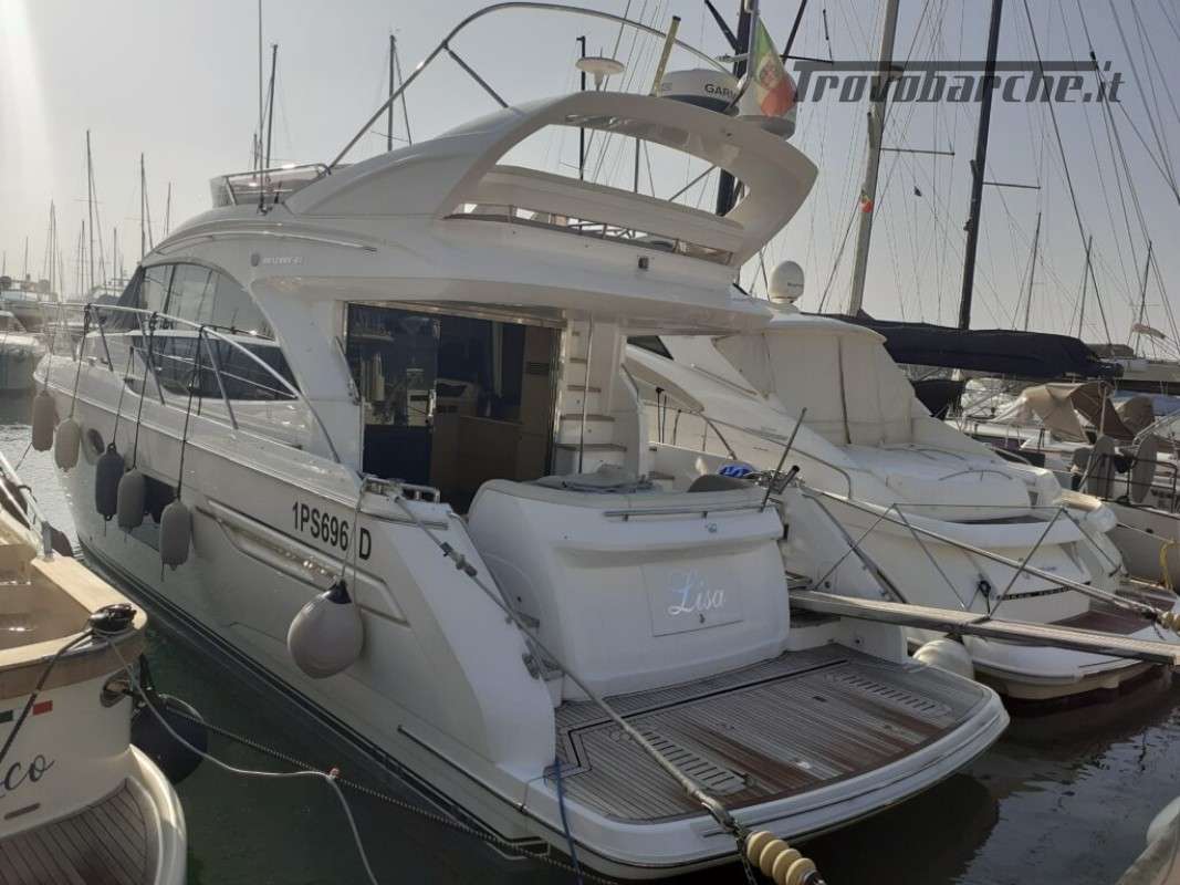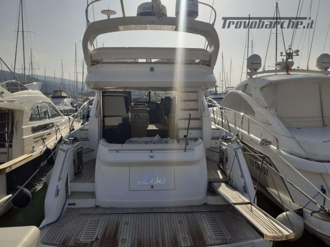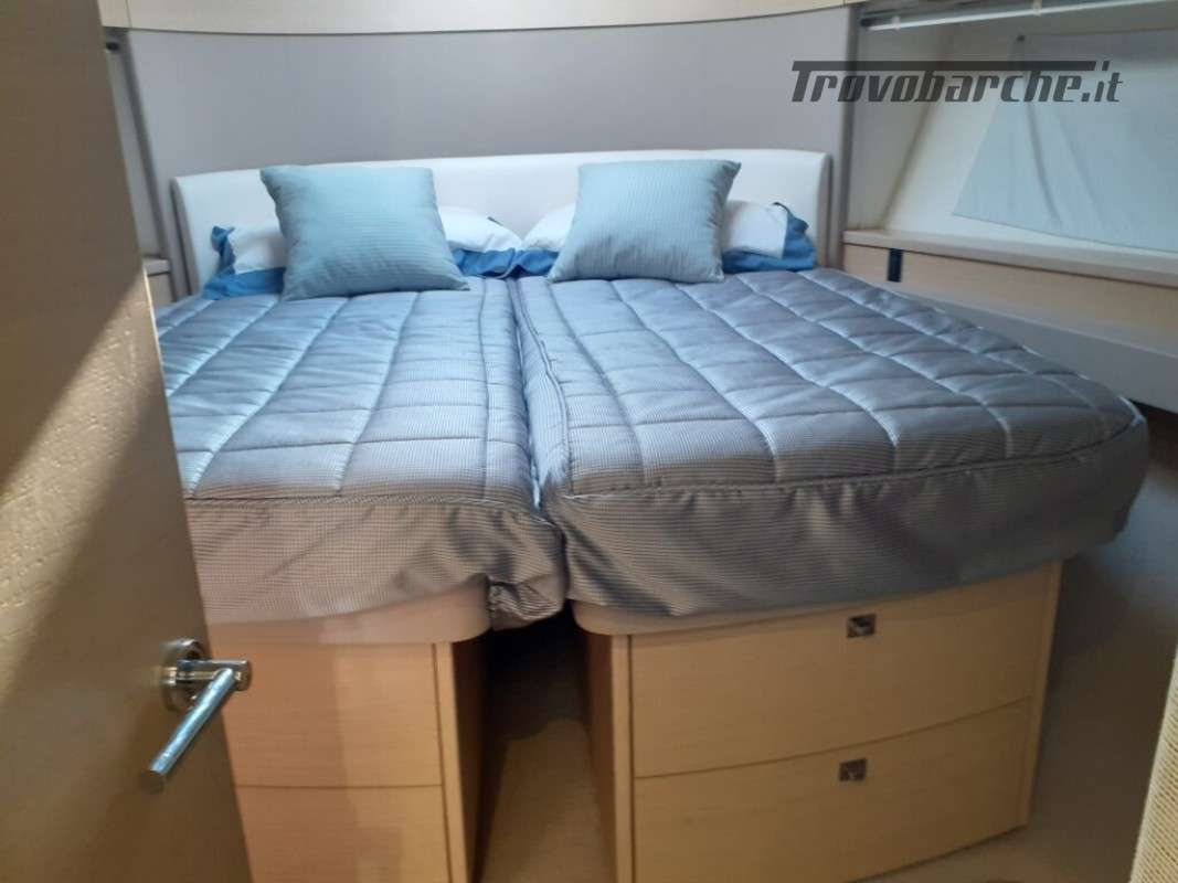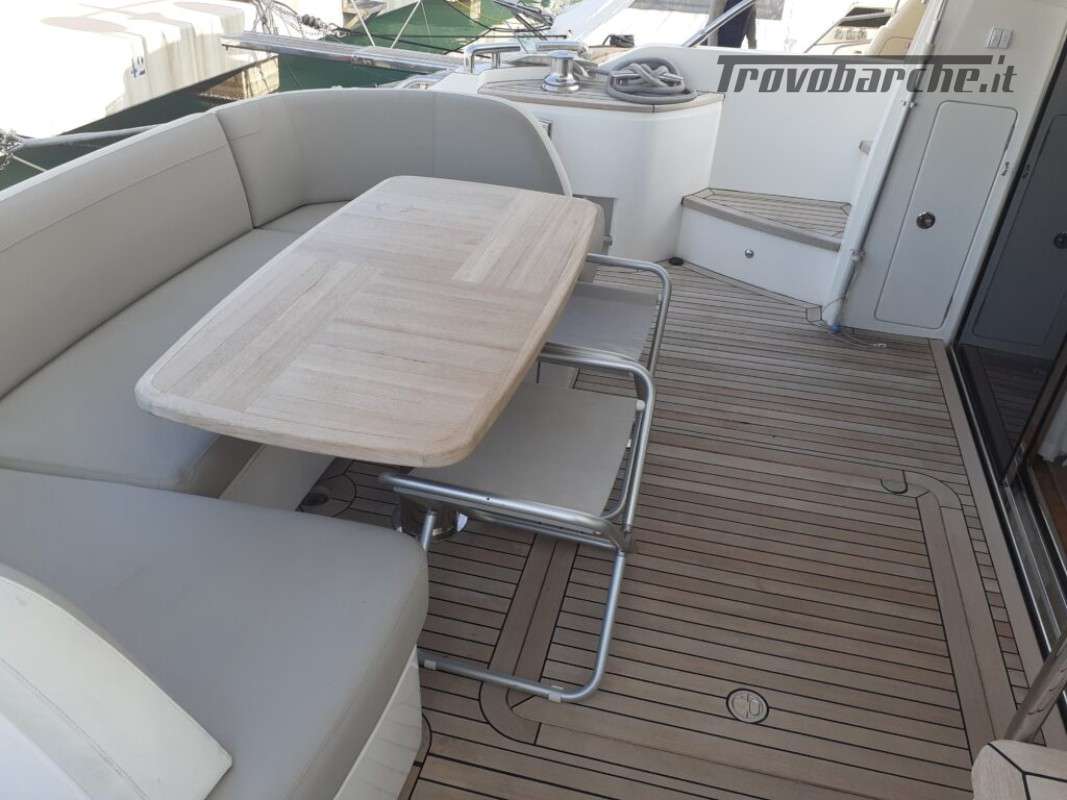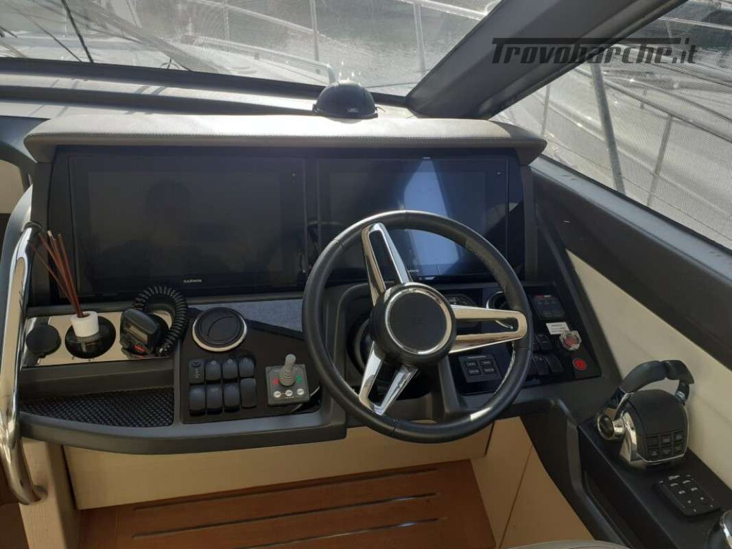 Accessori: Teak nel pozzetto e nei passaggi laterali, tavolo nel pozzetto, plancetta maggiorata idraulica in teak, passerella idraulica a scomparsa, camper cover, coperture cuscinerie flybridge, antenna tv sat, generatore, 3 cabine, 2 bagni, Joystick, doccia esterna, gps, vhf, ecoscandaglio, batterie, caricabatterie, pompa di sentina automatica, ancora e catena, salpa ancore elettrico, cuscineria completa.