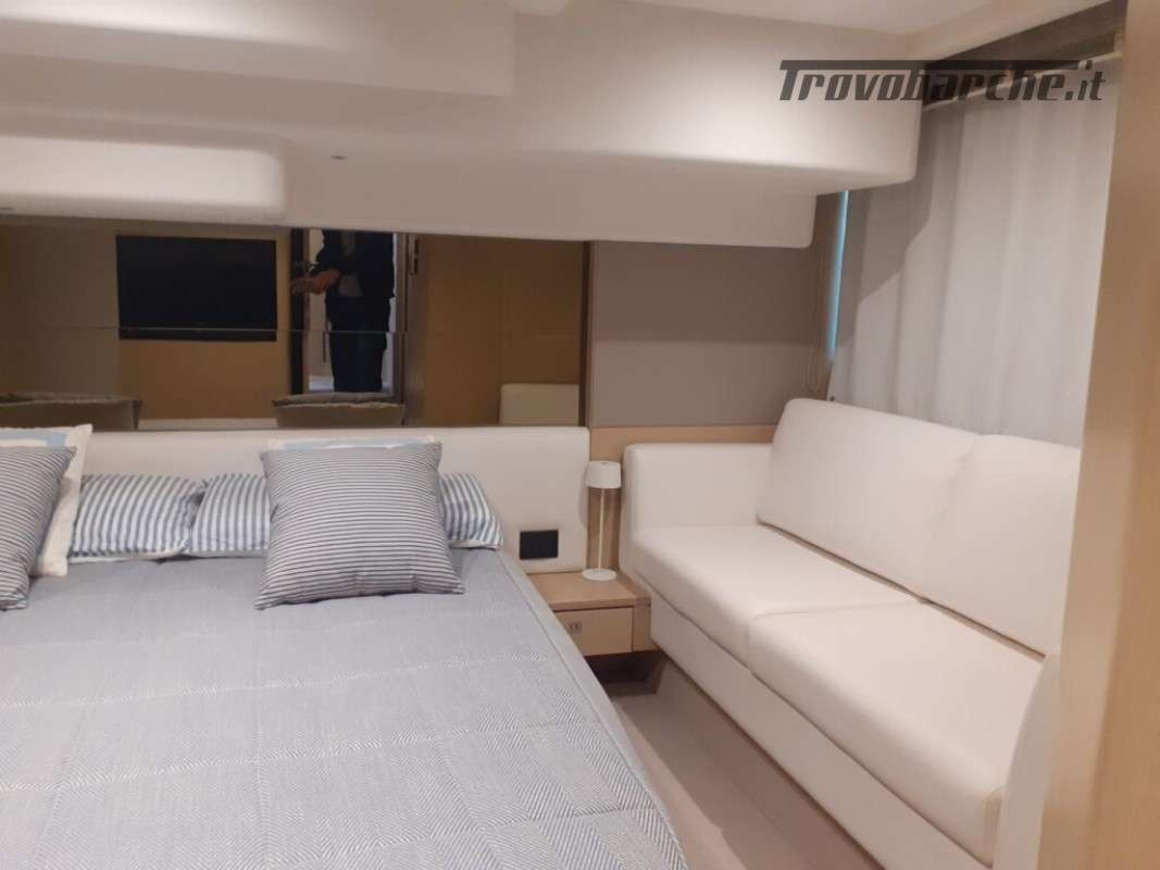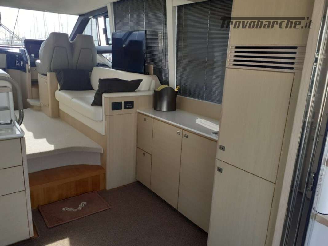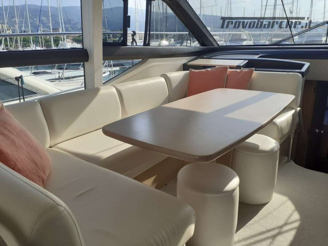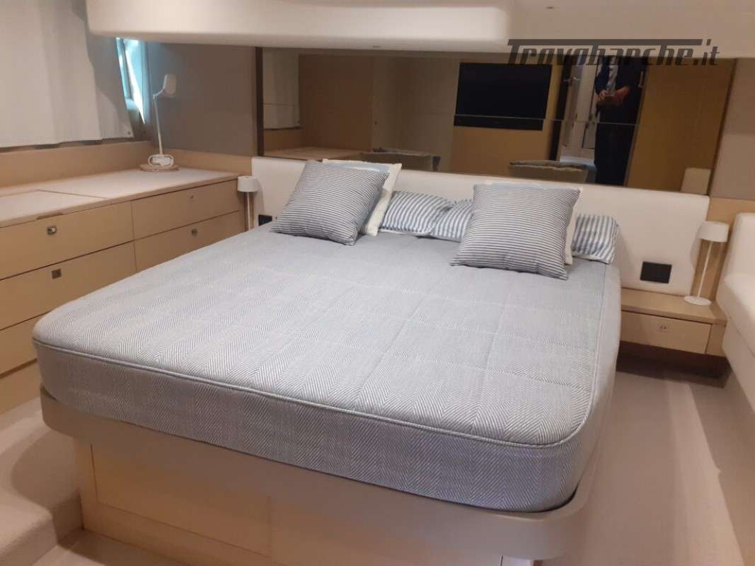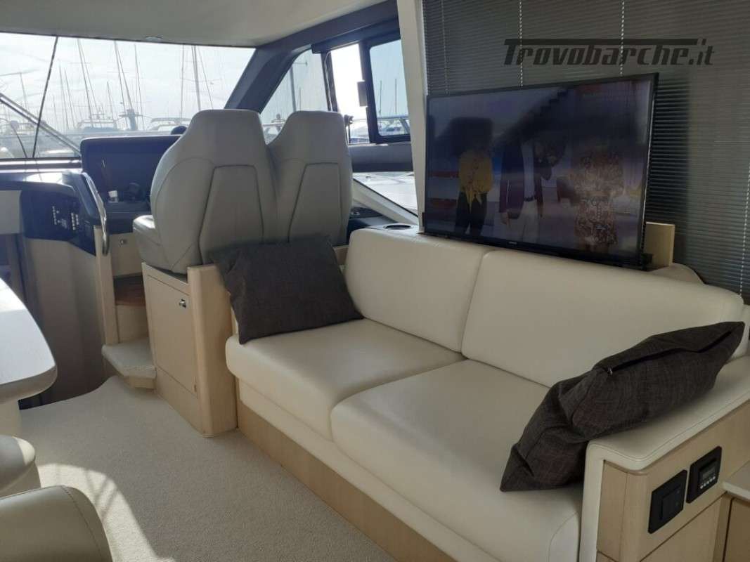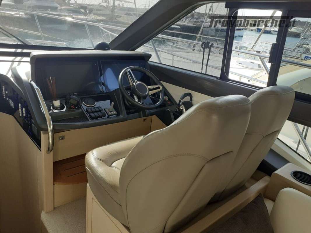 Accessori: Teak nel pozzetto e nei passaggi laterali, tavolo nel pozzetto, plancetta maggiorata idraulica in teak, passerella idraulica a scomparsa, camper cover, coperture cuscinerie flybridge, antenna tv sat, generatore, 3 cabine, 2 bagni, Joystick, doccia esterna, gps, vhf, ecoscandaglio, batterie, caricabatterie, pompa di sentina automatica, ancora e catena, salpa ancore elettrico, cuscineria completa.