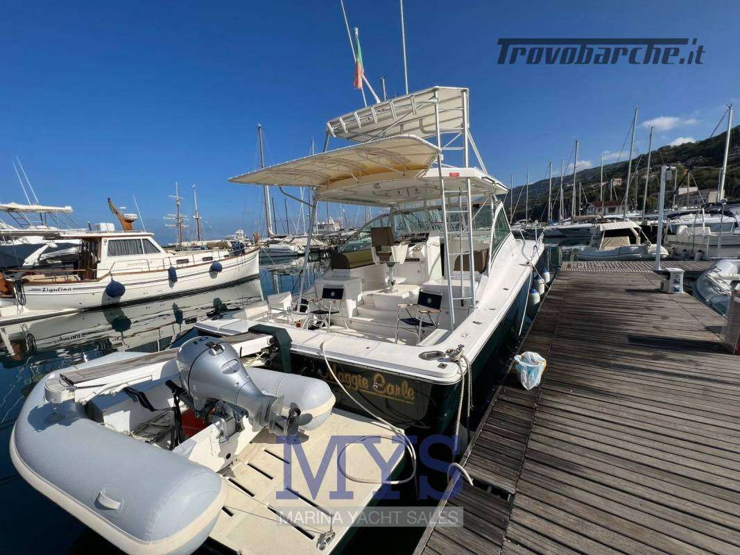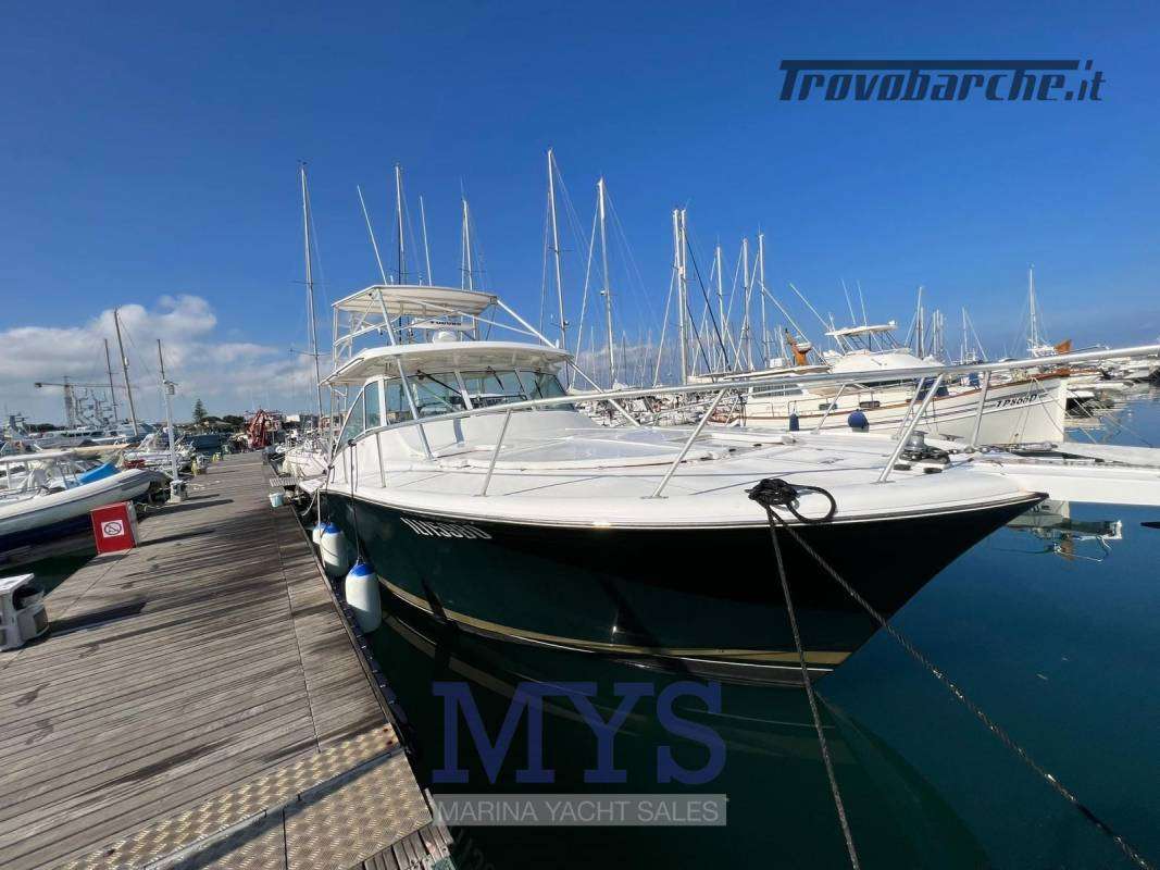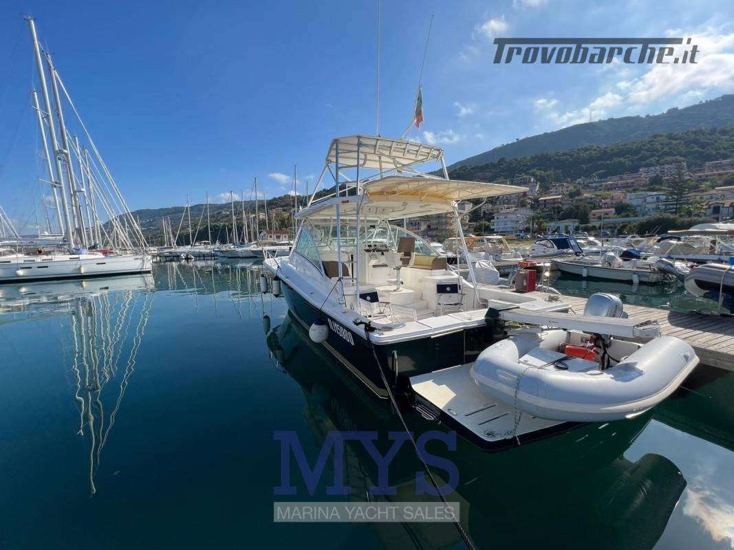 A solid, capable and charismatic offshore fisherman.Informazioni aggiuntive: Condizioni prezzo: BUONE CONDIZIONI GENERALI. Per Info *** Michele Borrelli; Cuscineria Pozzetto; Tromba; Allarme motore; Telo copriconsolle; Teli chiusura T-Top; Indicatori Flaps; WC marino elettrico; Porta ingresso; Caricabatterie; Colorazione speciale; Sistema Depurazione acque nere; Contametri catena; Digitale Terrestre; Fari fissi a poppa; Luci di cortesia; Antenna radar; Piastra elettrica; Altoparlanti; Radio AM/FM; Ripetitore strumentazione; Pavimento interno in legno; Apertura Vano Motore Elettrica; Lavandino nel Pozzetto; Tavolo Salone Abbattibile; Serbatoio Acque Nere; Alternatore; Luci di navigazione; Indicatore del Serbatoio dell’Acqua; Pompa Lavaggio Ponte; Cavo corrente di banchina; Materassi; Indicatore del serbatoio del carburante; Indicatore della pressione dell’olio nel motore; Indicatore della temperatura del motore;