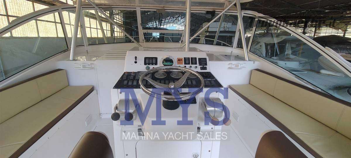 This particular boat is well equipped for serious sport fishing, featuring Tuna Tower, outriggers, rod holders, live bait tank and fighting chair, making it ideal for offshore big game fishing.