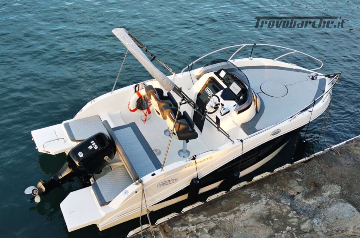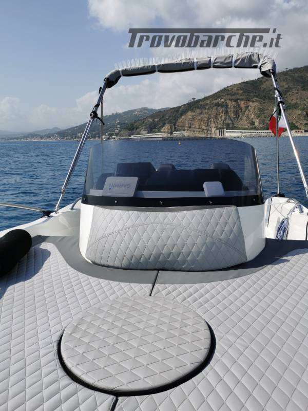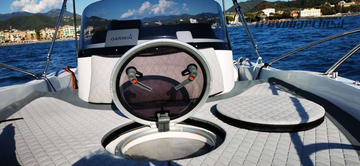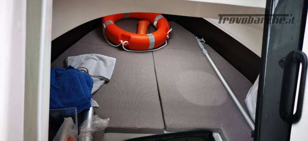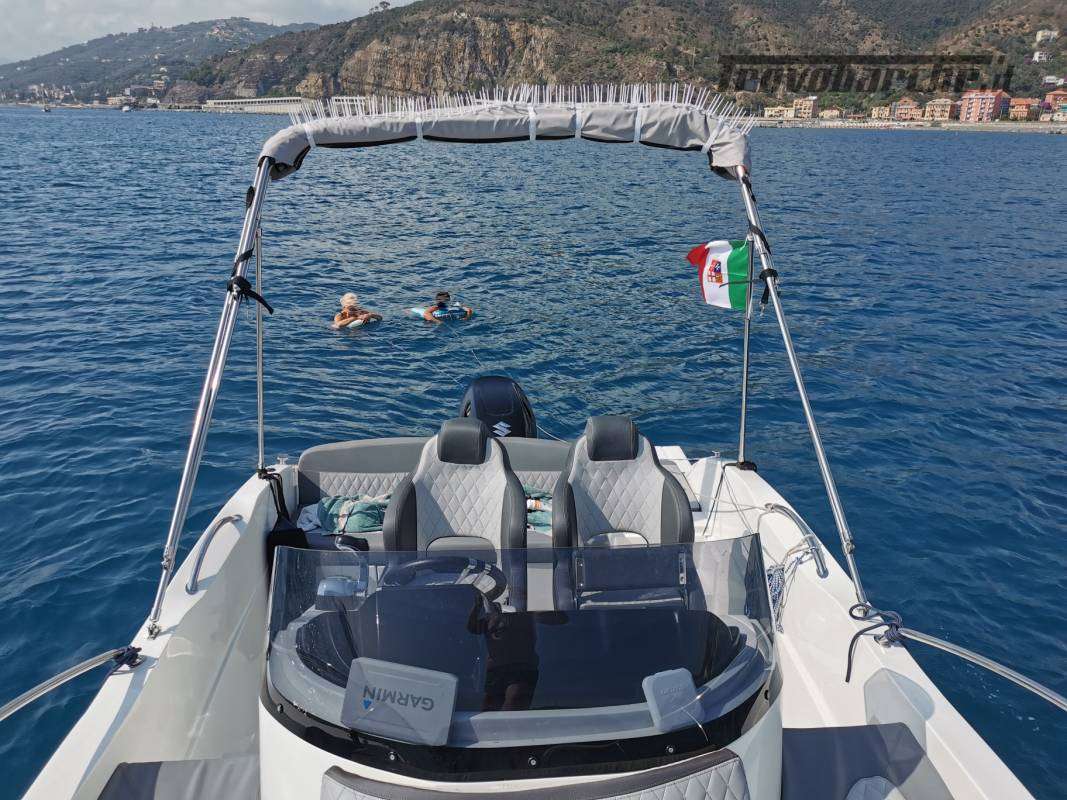 imbarco esterno acqua e benzina , serbatoio c.a. 140 litri, sotto i sedili anteriori, spiaggette con scaletta a scomparsa per risalita bagno con maniglia, rivestimento premium del prendisole con schienale appoggiato al pulpito prua dei sedili guida e passeggero del divanetto abattibile a Poppa , 2 sedili regolabili in tutte le direzioni, con tavolo centrale montabile, verricello elettrico con barbotin ibrido, con catena e ancora, musone basculante, doccetta esterna, scorrimano, tendalino 4 archi, garmin oblò(passo uomo) con rete antizanzare maniglia fianco porta ingresso, 2 cuccette, pompa sentina automatica e manuale, doppia batteria e stacca batteria, pannelli controllo, strumento segna carburante , scafo bicolore, gavoni a poppa, luci abitacolo e luci pozzetto a poppa, oltre alle luci regolari, tromba, chiavi chiusura porta e gavoni motore suzuki 115 con kit 140 elettronico elica acciaio, 2 estintori e dotazione varie, tot. ore di lavoro motore 70/80 , regolare manutenzione fatturata, fatto girare anche in acqua dolce a termine stagione. Barca in acqua tot. mesi 5 , sempre ricoperta da telo anche in ormeggio il resto nel capannone al chiuso ricoperta da cellophane.