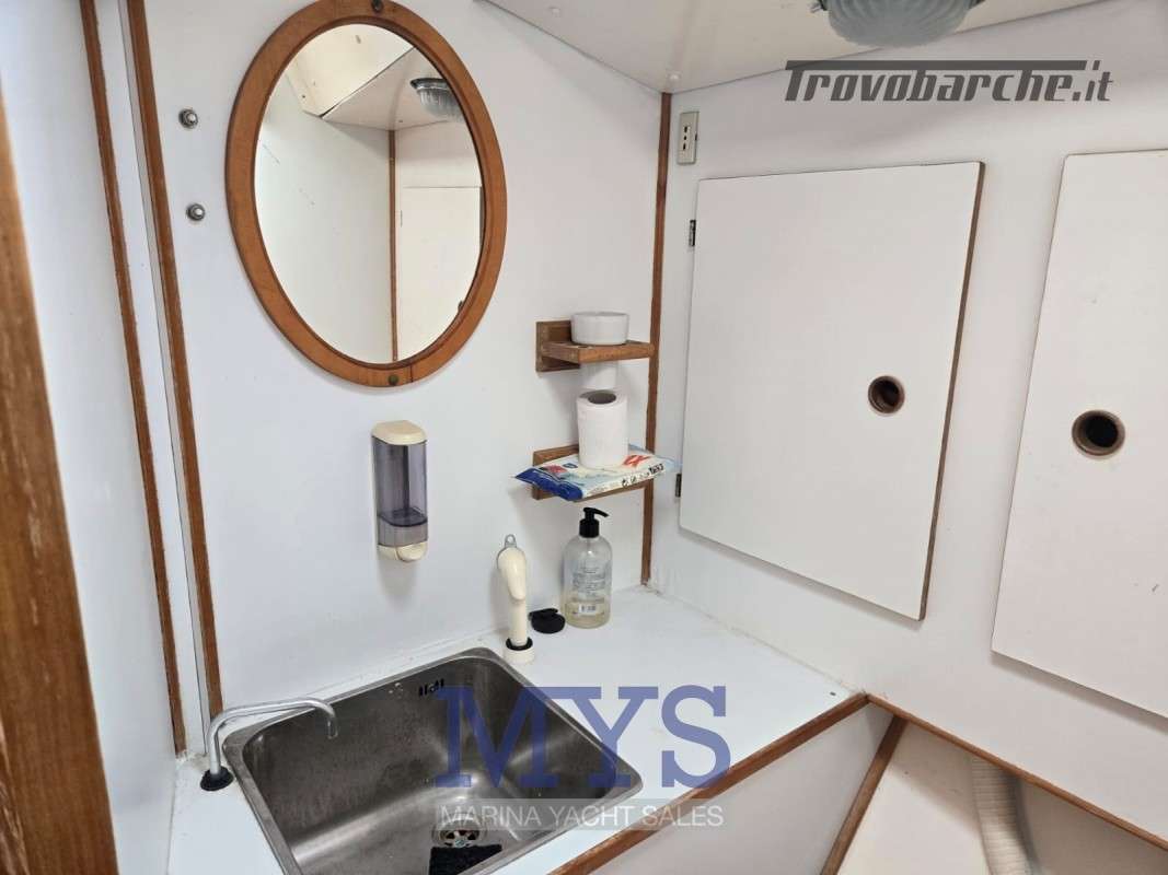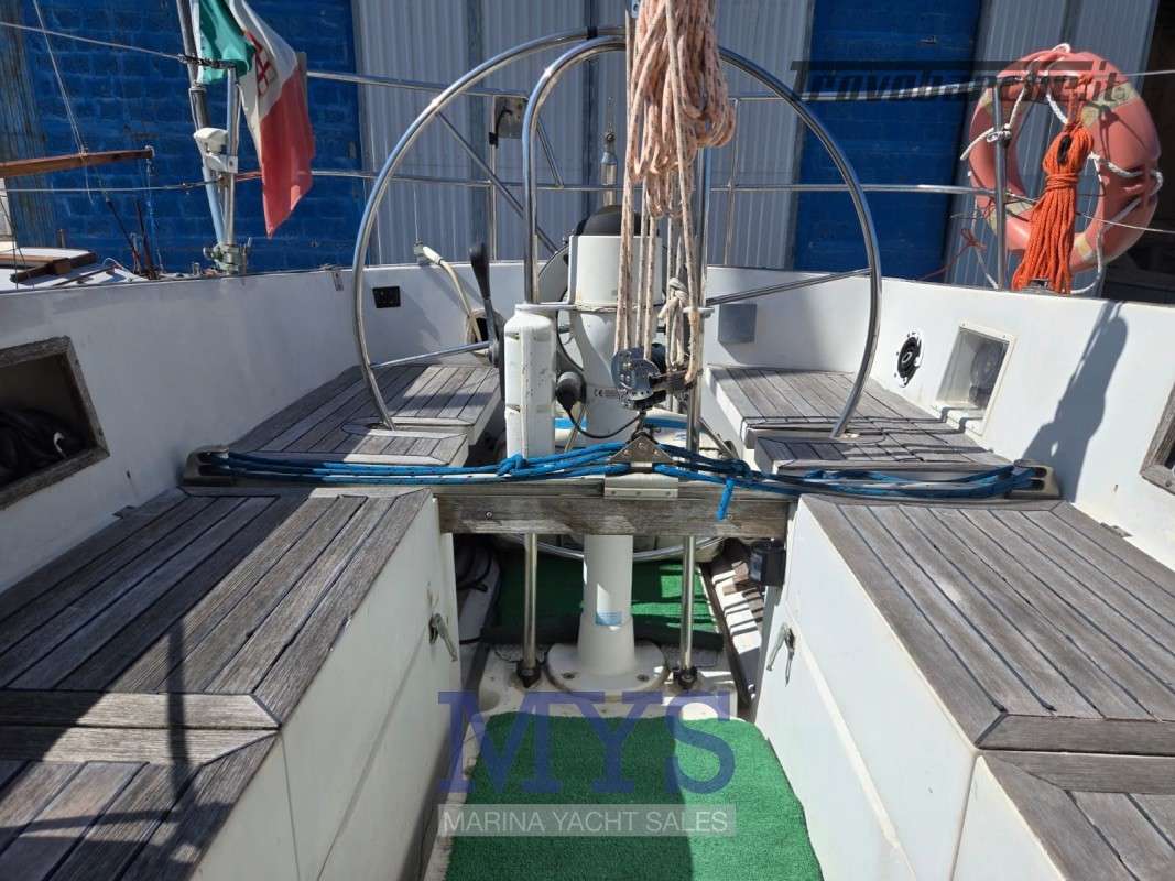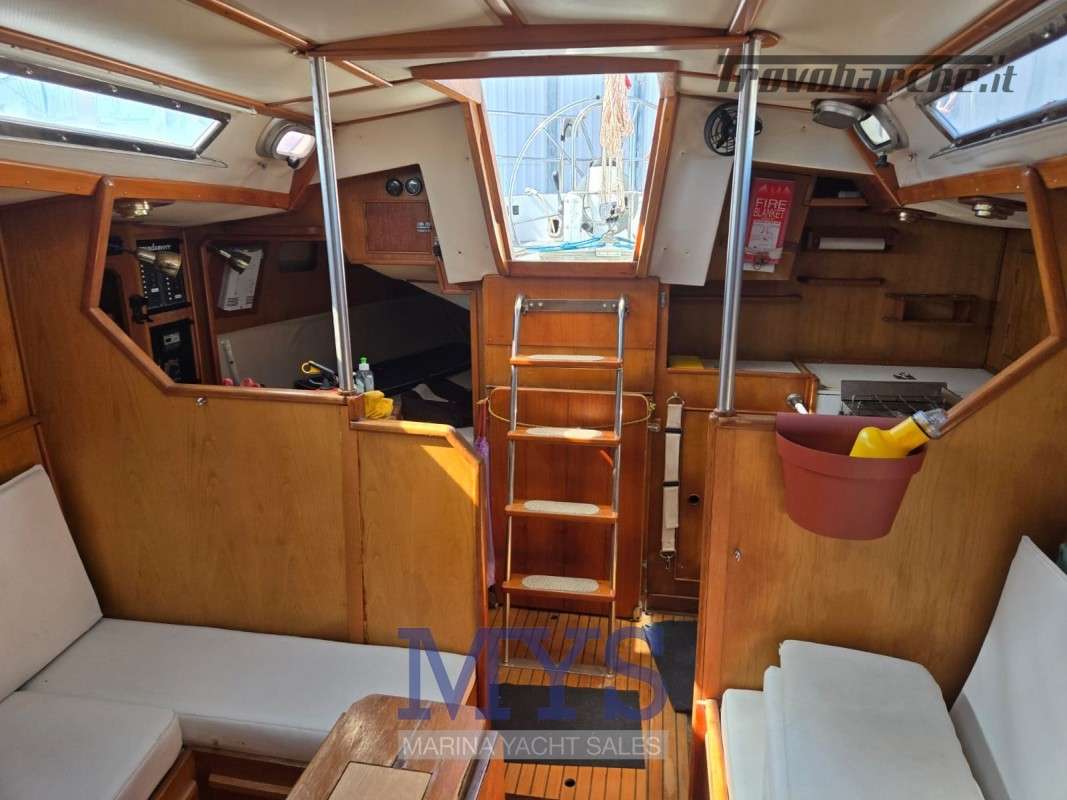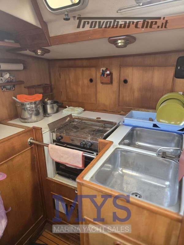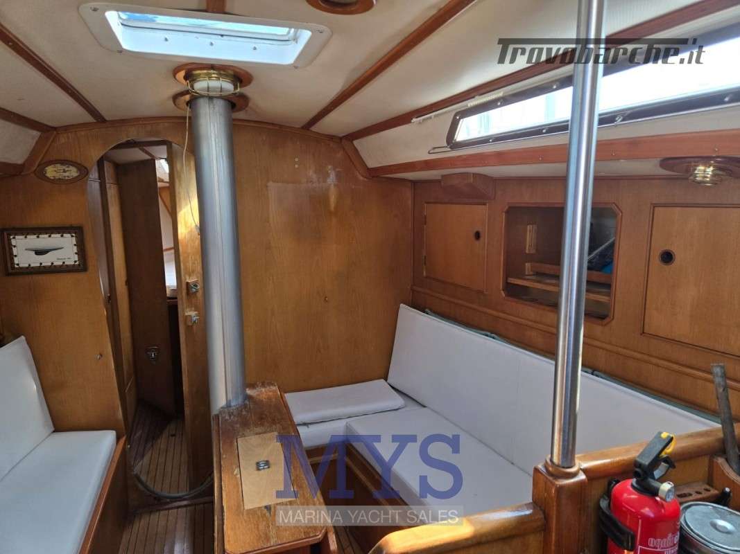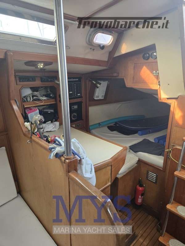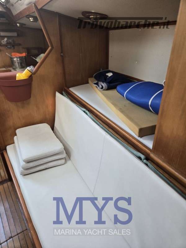 Randa steccata.Informazioni aggiuntive: Condizioni prezzo: DISCRETE CONDIZIONI GENERALI, PER INFORMAZIONI : STEFANO CUGUSI +39 348 9008495; Pozzetto Teak; Tromba; Ancora; Allarme motore; WC marino manuale; Caricabatterie; Plotter con antenna GPS; Altoparlanti; Sartiame spiroidale; Carrelli a sfera randa; Tenditore strallo di poppa; Trasto randa; Radio AM/FM; Vang rigido; Pavimento interno in legno; Tavolo Salone Abbattibile; Luci di navigazione; Acqua Calda; Cavo corrente di banchina; Quadro comandi; Parabordi;