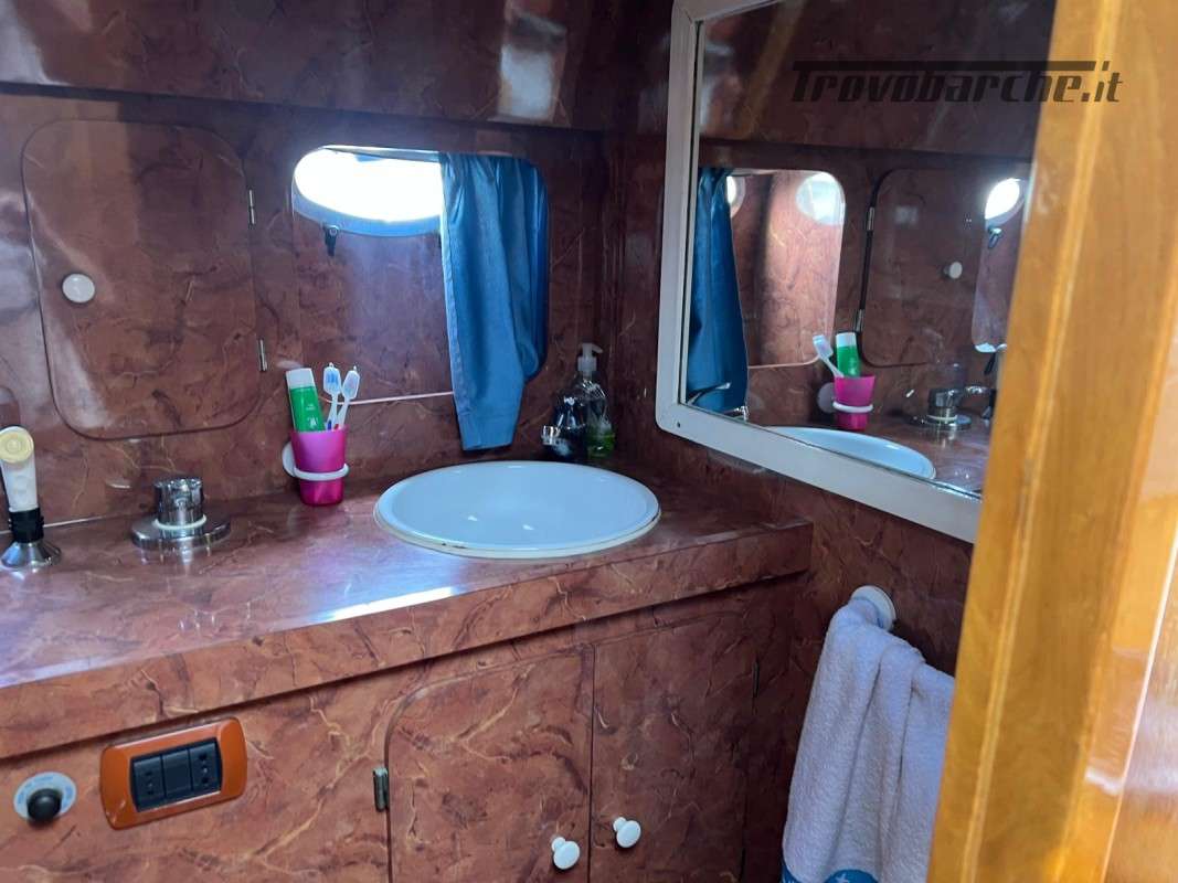 Vendesi fantastico Piantoni Amalfi modello Ondazzurra 33 Fly usato, costruito nel 1989 in vetroresina, lungo f.t. 9,37 metri e largo 3,51 metri, capace di ospitare fino a 10 persone a bordo senza rinunciare al comfort. Questa barca è motorizzata con due E.F.B. VOLVO PENTA AD 41 B da 200 CV ciascuno, diesel, con sole 100 ore di moto, rimontati dopo una revisione totale nel 2023 presso officina rettifiche a Livorno (sbancamento motori, bronzine banco e biella, canne e pistoni, canule iniettori ecc.), quindi praticamente a “ore zero” dalla revisione. Con un serbatoio carburante da 700 litri e 300 litri di acqua dolce, raggiunge una velocità massima di 24 nodi e mantiene una crociera confortevole a 17 nodi; il consumo a velocità di crociera è di circa 60–65 litri/ora per entrambi i motori insieme. Dotazioni di sicurezza complete e non scadute, strumentazione moderna e affidabile — GPS, ECO, VHF doppio (anche su fly) — e tutto il quadro strumenti rinnovato con impianto elettrico nuovo e strumenti VDO installati nel 2022, per una navigazione sempre sotto controllo. Gli interni offrono 6 comodi posti letto: divano letto matrimoniale, camera con due letti a castello e cabina armatoriale matrimoniale, più 1 bagno con cassa acque nere; la cucina dispone di due fuochi a gas e lavandino. Tra gli accessori di bordo troviamo Webasto, boiler 220V, caricabatterie Quick Silver SBC 500 con tre uscite, pannello solare con display, passerella idraulica Opac Mare, impianto stereo, TV LCD 24″, inverter 2000 W e 3 batterie da 180 Ah (una installata nel 2023, due nel 2024). Ultima carenatura ad aprile 2025: gelcoat rifatto e trattamento anti-osmosi eseguito con 4 mani di Boero Defender, a testimonianza della cura costante riservata alla carena. Completano la dotazione la copertura della consolle fly e la chiusura totale del pozzetto di poppa, per protezione e privacy quando necessario. Visibile a La Spezia, prezzo richiesto €53.000 + 5% commissione agenzia: un’opportunità per chi cerca un fly solido, pronto alla navigazione e con interventi recenti che ne aumentano affidabilità e valore. PER MAGGIORI INFORMAZIONI O FOTO SCRIVERE SU WHATSAPP AL NUMERO *** SE VOGLIONO PRENDERE APPUNTAMENTO PER VEDERE E PROVARE L’IMBARCAZIONE DEVONO CHIAMARE IL NUMERO *** C’È LA POSSIBILITÀ DI TRASPORTI IN TUTTA ITALIA E OLTRE, O IL RITIRO DI PERSONA DELL’IMBARCAZIONE.