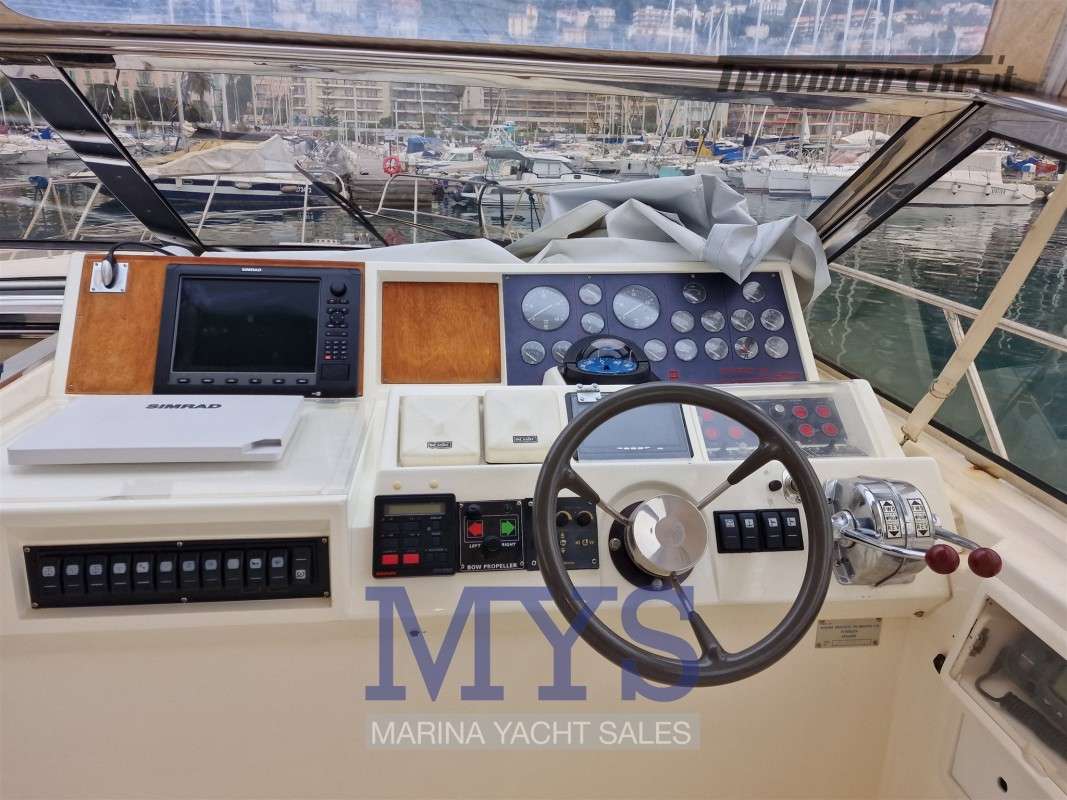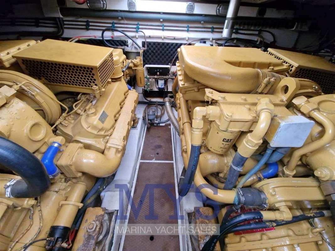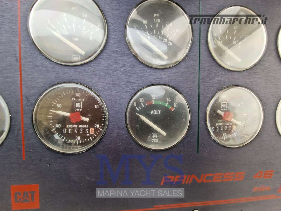 Princess 46' Riviera con due Caterpillar serie 3208TA da 425 Hp cad. con solo 426 ore di moto, negli anni è sempre stato matenuto in efficienza, nel 2019 sostituite prese a mare motori, servizi e bagni, revisione impianto elettrico intrerno ed esterno, montaggio impianto e serbatoio acque nere. Nel 2021 Revisione scambiatoria. acqua , olio, invertitori e intercooler - Revisione impianto elettrico motori e motorini avviamento - Sostituito interrutori plancia - Sostituito Radar - Sostituito Plotter/GPS - Revisione motori e tagliandi - Sostituzione licquidi refrigeranti.