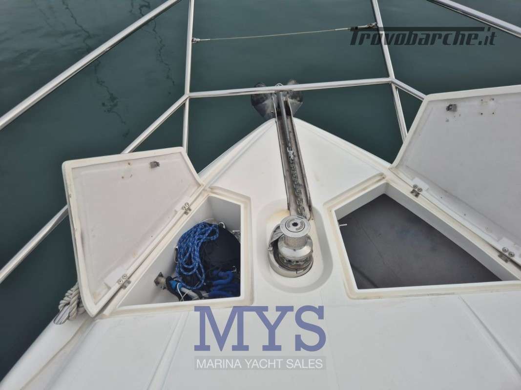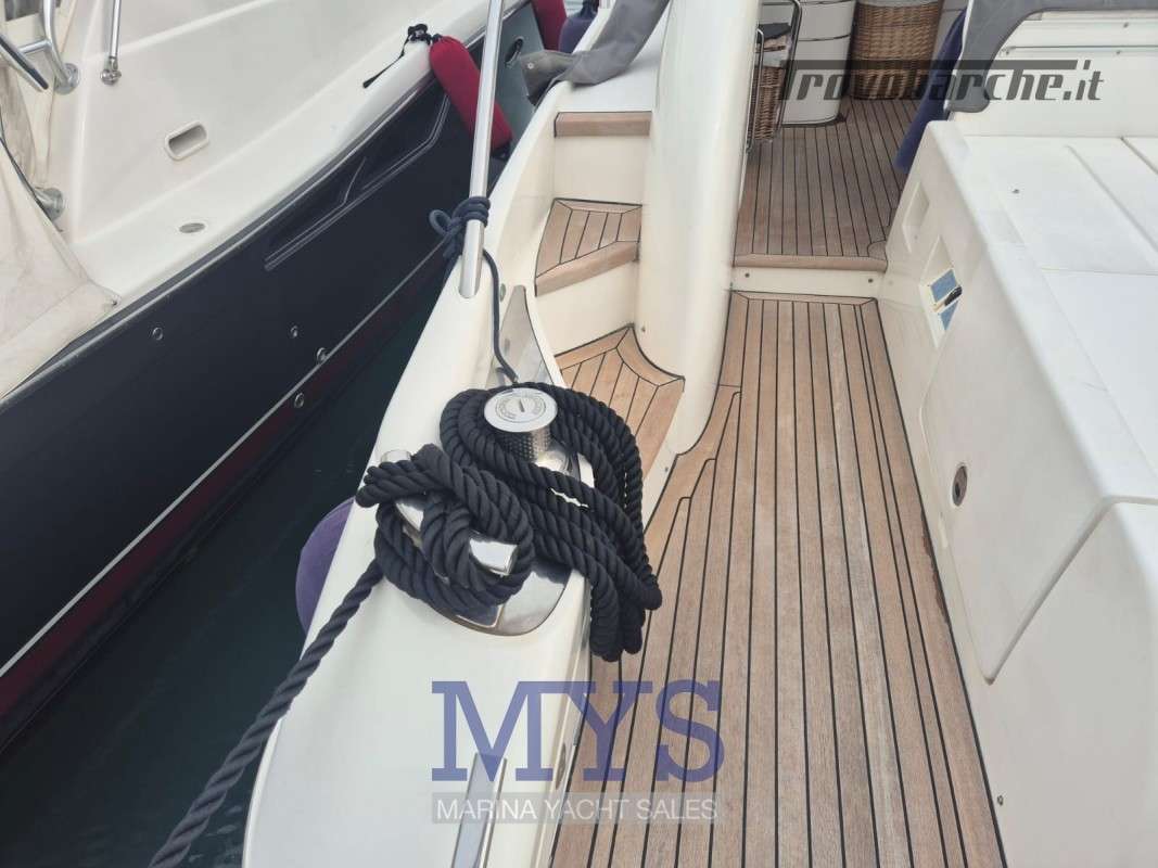 Hard Top.Informazioni aggiuntive: Condizioni prezzo: OTTIME CONDIZIONI GENERALI, PER INFORMAZIONI: Stefano Cugusi +39 348 9008495; Cuscineria Pozzetto; Pozzetto Teak; Tromba; Ancora; Allarme motore; Indicatori Flaps; WC marino elettrico (2); Caricabatterie; Luci subacquee; Garage per tender; Antenna Satellitare TV; BBQ/ Grill; Contametri catena; Luci di cortesia; Antenna radar; Plotter con antenna GPS; Piastra in vetroceramica; Presa acqua banchina; Dotazioni di sicurezza entro 50 miglia; Altoparlanti; Tavolo pozzetto; AIS; Comando motori elettronico; Radio AM/FM; Sedile Copilota; Pavimento interno in legno; Lavandino nel Pozzetto; Oscuranti; Zanzariere; Serbatoio Acque Nere; Luci di navigazione; Indicatore del Serbatoio dell’Acqua; Indicatore del Serbatoio delle Acque Reflue; Pompa di Scarico del Serbatoio Acque Reflue; Aspirazione dal Ponte delle Acque Sporche; Acqua Calda; Cavo corrente di banchina; Parabordi; Materassi; Indicatore del serbatoio del carburante; Indicatore della pressione dell’olio nel motore; Indicatore della temperatura del motore;