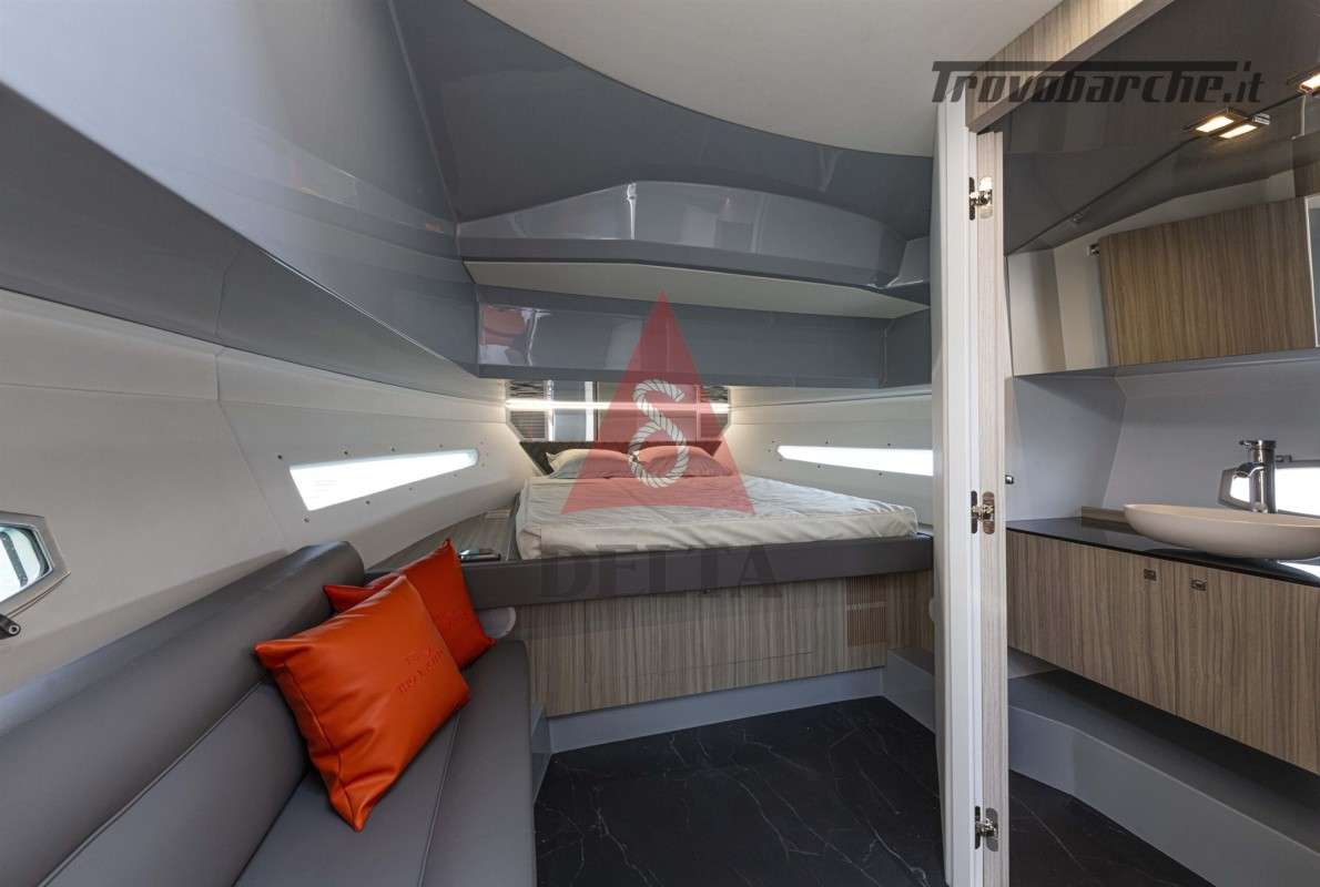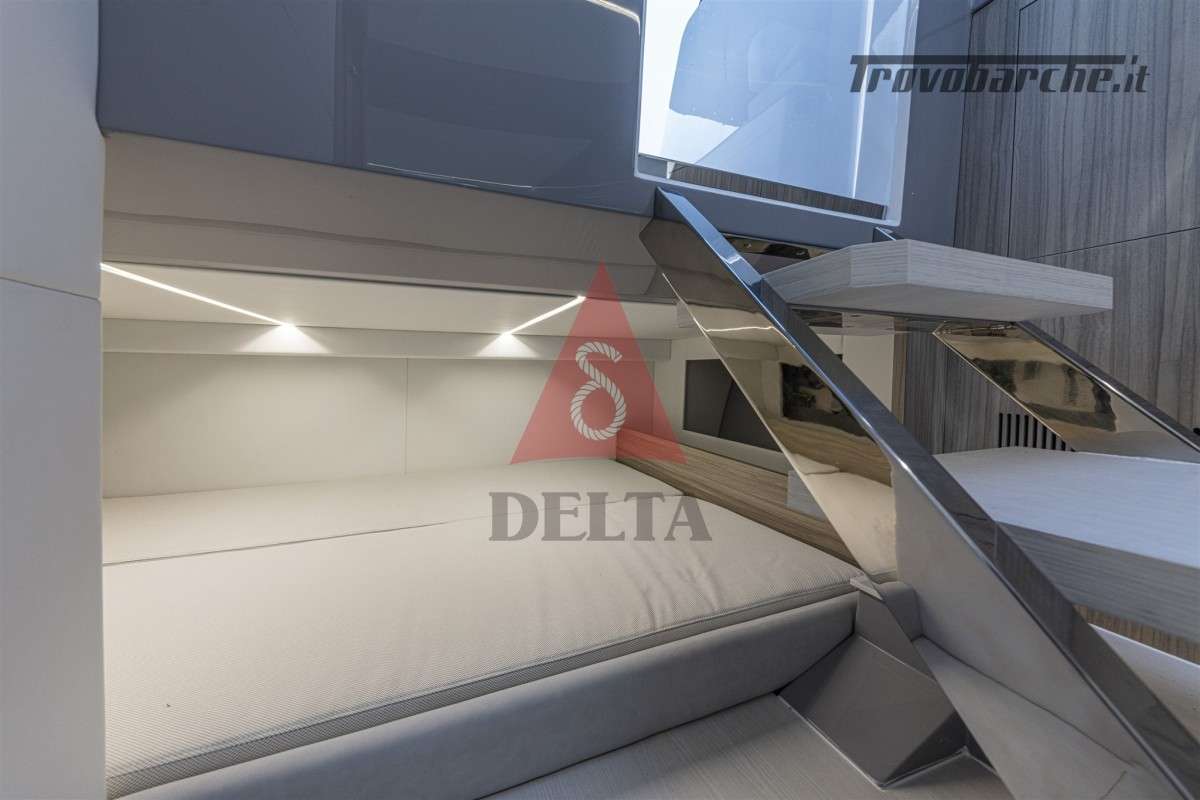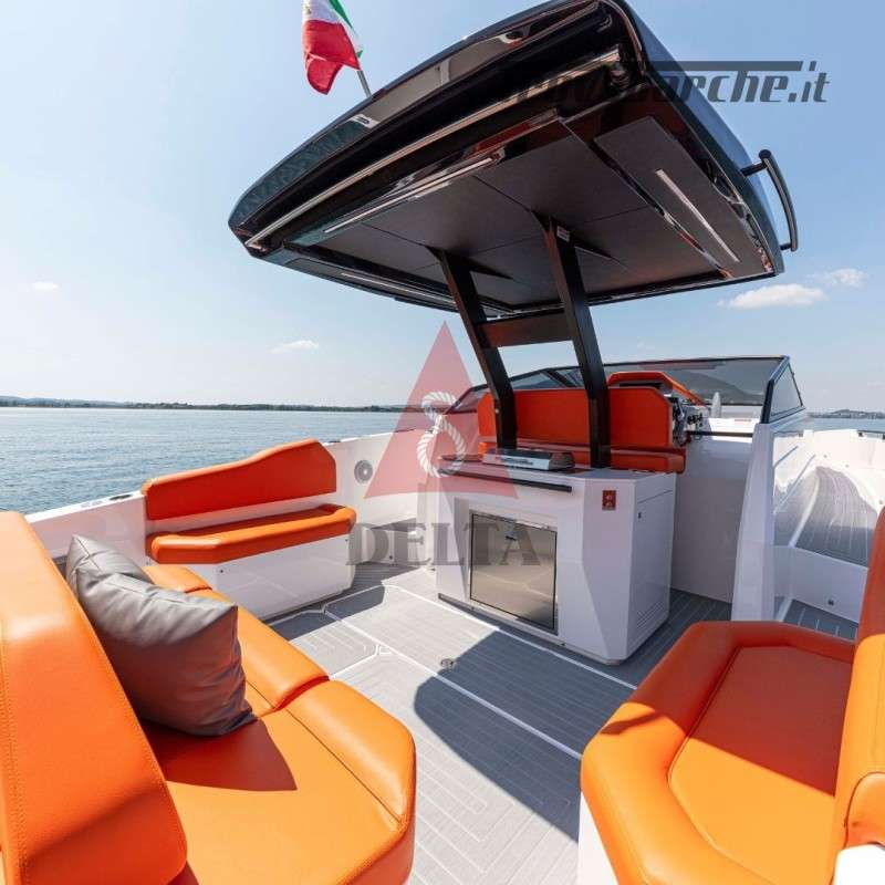 Dotazioni: Borsa con istruzioni componenti di acquisto, manuale d'uso e manutenzione scafo, n. 6 parabordi F3 con copri parabordi, n. 2 cime d'ormeggio 15 mt, estintori, pozzetto e cabina, mezzo marinaio, bandiera nazionale.