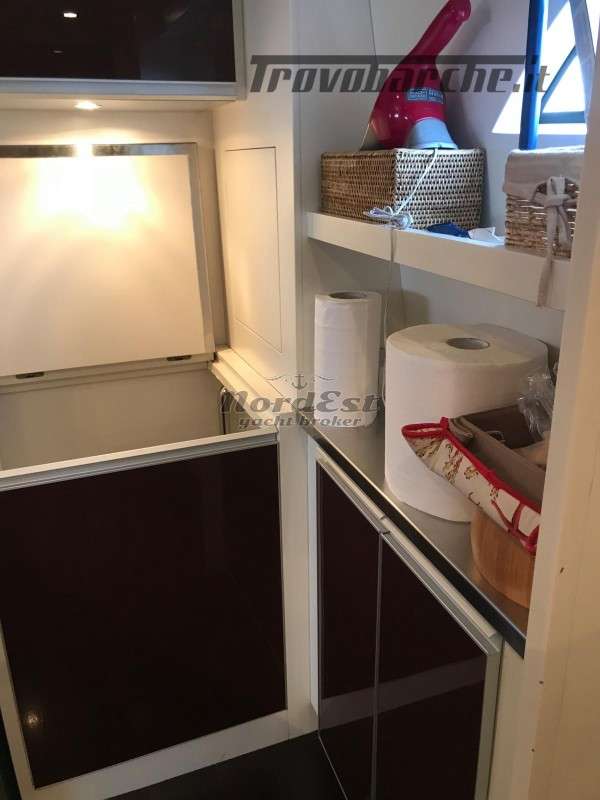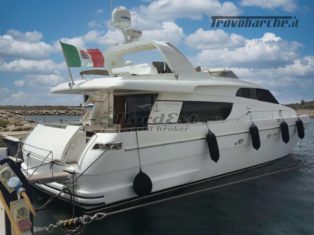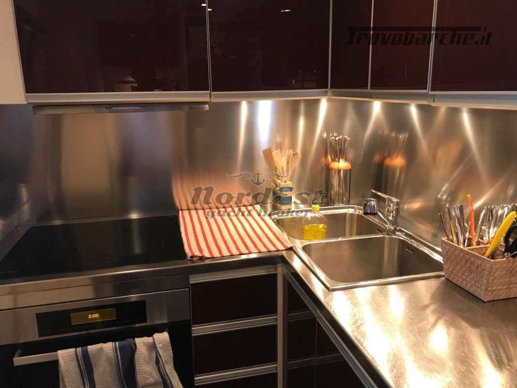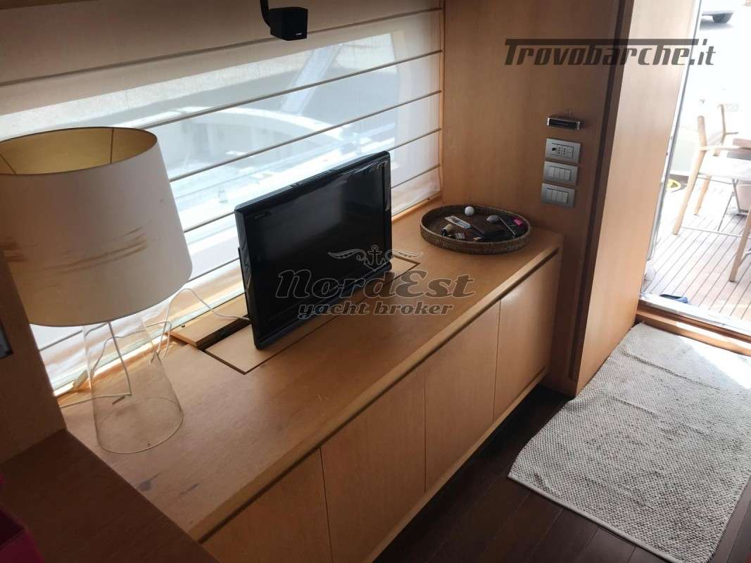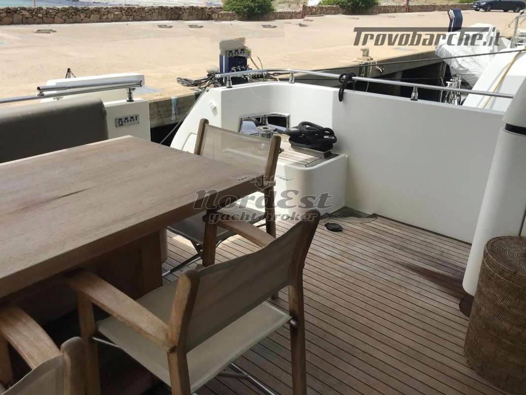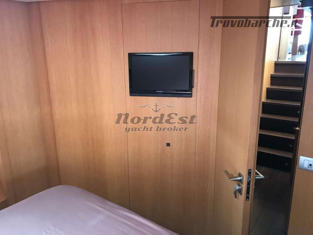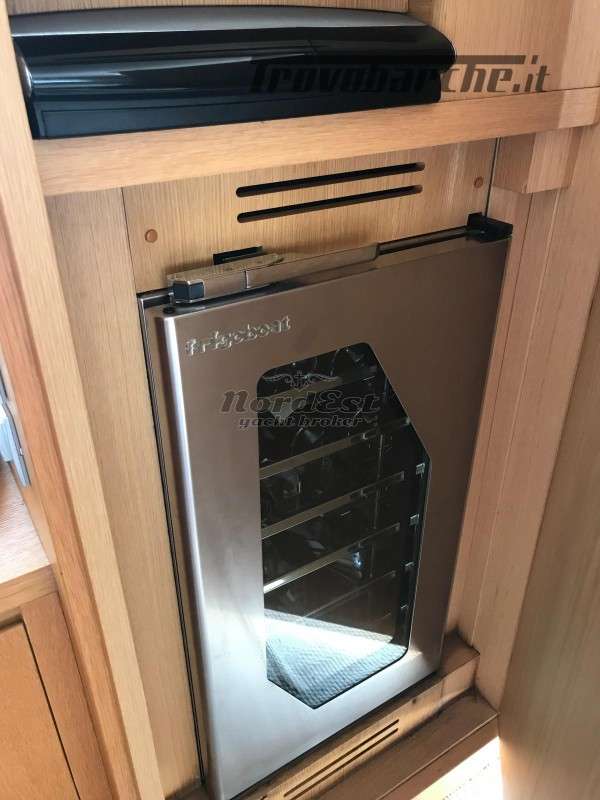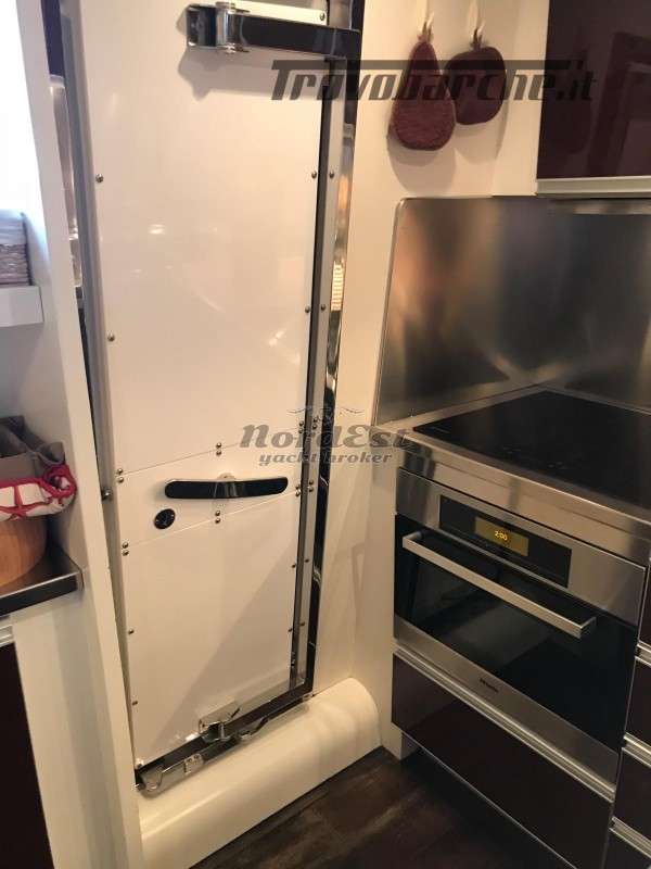 Generatore - Tensione di bordo: 24 / 220 V - Caricabatterie - Autoclave - Boiler - Impianto antincendio - Elica di prua - Elica di poppa - Doccia esterna - Flaps - Gru sul fly - Passerella - Luci di cortesia - Luci subacquee - Plancetta - Aria condizionata - Impianto acque nere - Winch tonneggio - Zattera - Impianto acqua a pressione - Tender - Frigorifero esterno - Mobile bar: si in dinette - Lavatrice - Forno - Frigorifero - Congelatore - Ghiacciaia - Icemaker - Grill esterno fly/pozzetto - Cassaforte - Bimini top: in acciaio - Cuscineria prendisole - Coprifinestrature esterne - Norvegese