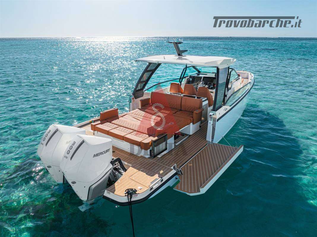 2 Motori Mercury V8 da 300CV (5 anni garanzia) - Timoneria elettrica con volante in pelle regolabile - Mercury Vessel View Mobile - Mercury Active Trim.