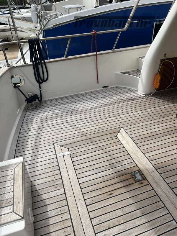 La barca e’ stata estensivamente refittata nel 2021 e scrupolosamente mantenuta fino ad oggi. I lavori principali sono stati: Impianto elettrico completamente rifatto con nuovi cavi, prese elettriche, caricabatterie Victron, staccabatterie, portafusibili, differenziali, isolatori galvanici, inverter Victron, sensori allarme, Digital Multi Control Victron e sistema di gestione combinato Victron 4 con schermo a colori in plancia e controllo da remoto.Nuove batterie servizi, motori e elica prua AGM 220 Victron . Installazione di 2 pannelli solari. Nuovo impianto VHF e antenna Istallazione di 2 antenne internet e modem wireless Aggiunto un GPS Raymarine E120 comprato usato Nuova autoclave Jabsco Nuovi rubinetti cucina, bagno e doccetta pozzetto Nuove luci di via Nuova pompa manuale sentina Nuovi tubi e centralina idraulica passerella Nuovi vetri fume’ laterali e porta dinette e porte laterali riverniciate. Rifatti molti dei pannelli di legno interni e ripristino colore cornici Riverniciati I gavoni Rifatti alcuni cielini Smontati e risigillati tutti gli oblo’ Cambiate tutte le lampadine con LED e nuovi faretti lettura cabine Nuovo nome barca in acciaio Parasoli laterali e posteriori in telo ombreggiante. Oscuranti estivi per vetrature laterali e frontali plancia. Nuove cuscinerie prendisole Nuovo winch tonneggio in pozzetto Nuovo piano cottura e microonde Nuovo serbatoio acqua prua Pulizia serbatoi gasolio Sostituzione prese a mare Revisione alternatore Nuove pompe ricircolo aria condizionata Lucidatura murate fatta ogni anno Pulizia scambiatori calore/intercooler e revisione pompe acqua mare Sostituzione elettrovalvole gasolio Nuove tubazioni scarico, elettrovalvola e pompa wc elettrico.Informazioni aggiuntive: Pozzetto Teak; Ancora; Allarme motore; WC marino elettrico; Caricabatterie; Piastra in vetroceramica; Pannelli Solari; Oscuranti; Ponte in teak; Pompa per Acqua di Mare;