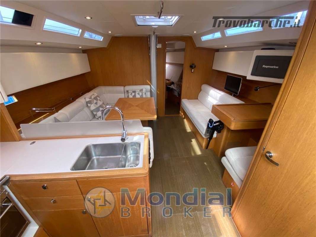 • Finished throughout in oak with contrasting dark veneer cabin sole.