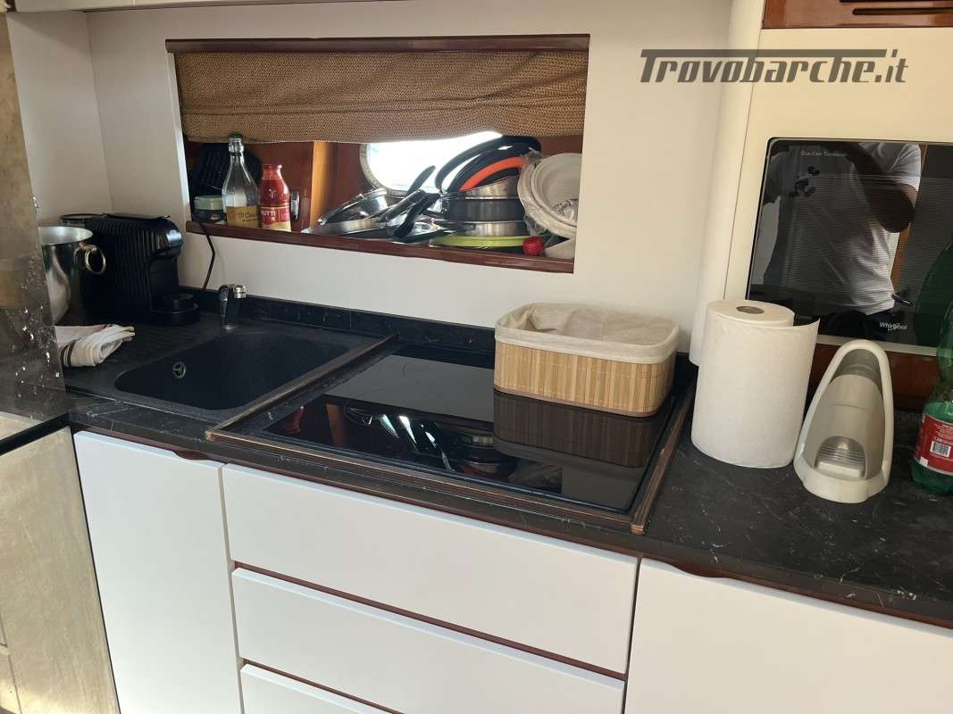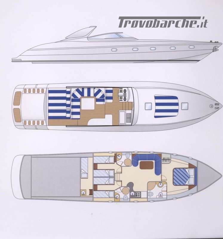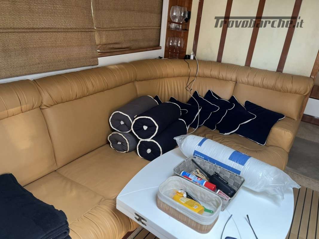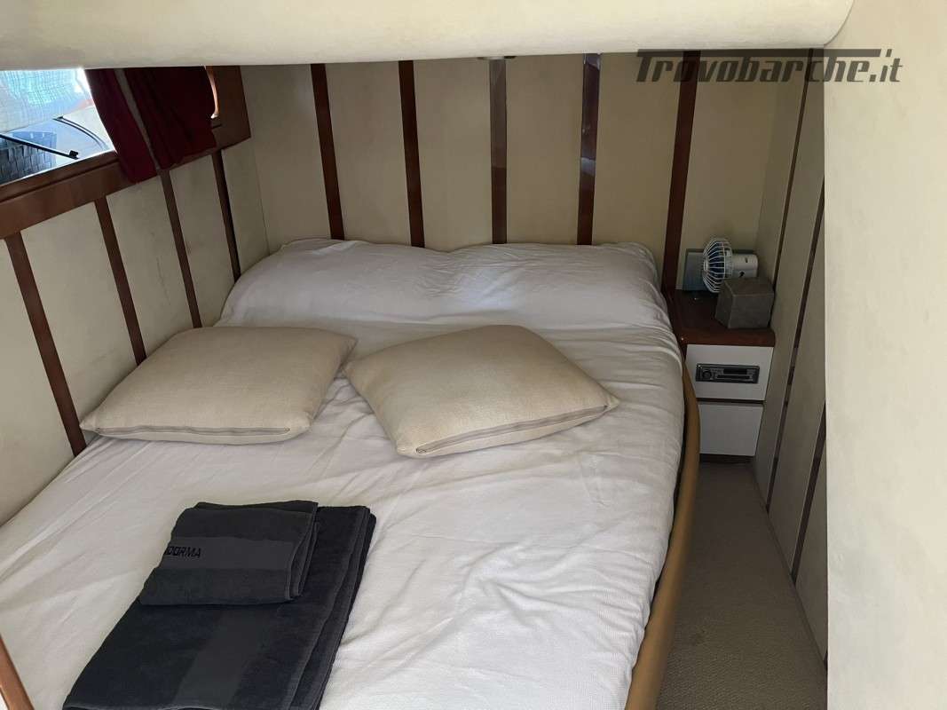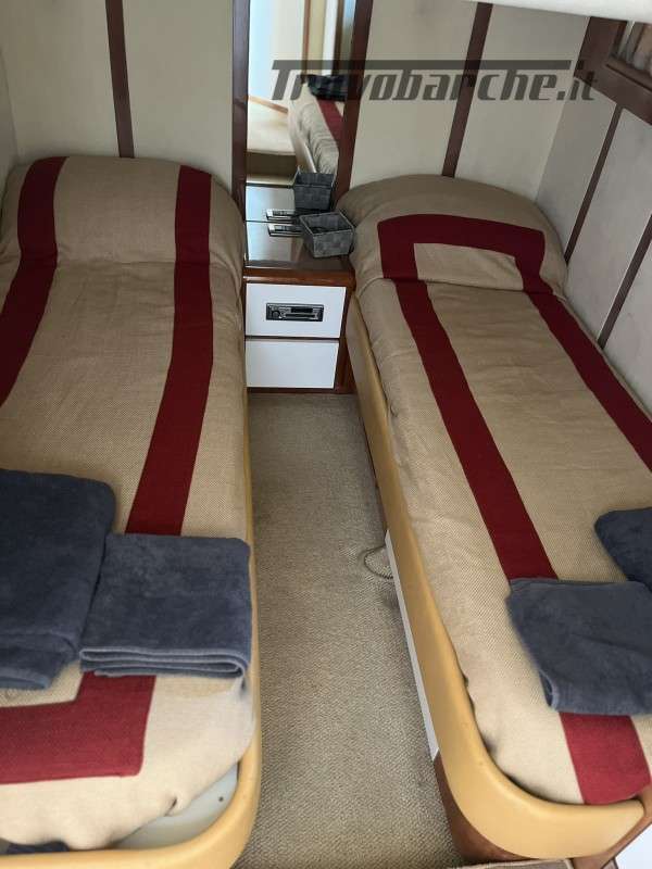 Slanciato e filante, il Madras 20 nasce per gli spostamenti veloci in mare aperto. Gli spazi a bordo sono ampi e confortevoli. La linea affusolata è studiata per tagliare le onde in modo tale da raggiunfere velocità superiori con un numero inferiore di giri e di consumi. Il motor yacht è dotato di ogni confort ed è full optional e con a bordo tecnologie di navigazione e comunicazione avanzate. La manutenzione è accurata per ogni componente meccanica , elettronica . garantisce la piena funzionalità e sicurezza dell'imbarcazione . Disposizione interna: 3 cabine più cabina marinaio. Una armatoriale a prua con bagno e doccia in cabina, Tv e stereo. Una cabina matrimoniale e una doppia a poppa con bagno con doccia in comune, tutte con clima regolabile autonomamente. La cabina marinaio è separata ed ha accesso dal pozzetto esterno, è climatizzata, ed è dotata di lavabo, doccia e wc. Internet in tutta la barca con wifi . Sistema di alaggio tender rinforzato e semplificato, Piano calpestio di coperta in antisdrucciolo, fughe teak in plancetta bianche . Doccia a prua .Installazione lavello e cucina esterni con piano in corian nero e copertura in legno. Cuscineria, prua e poppa in ordine. Eliche bilanciate 2024 . Revisione Arneson e tutte le tubazioni e pompe relative annuale , cuffie arneson 2024. . Strumenti Arneson sostituiti 2020, . Zanzariere rimovibili a tutti gli oblò e alle due sfuggite di coperta. Grande gavonatura e cassetto sotto il letto della cabina armatoriale con apertura su pistoni Pompe doppiate per tutti i servizi igienici. Faretti subaquei supplemetari. Scaletta bagno con bicchieri anche laterali, teak spiaggetta 2021 lucidatura 2024. Refitting e manutenzione straordinaria Motori, Generatore, Arneson 2024 con elenco dettagliato privatamente a richiesta. Elettronica di bordo nuova 2024. impianto Fusion 2024,.Informazioni aggiuntive: Pozzetto Teak; Ancora; Allarme motore; WC marino elettrico (3); Caricabatterie; Contametri catena;
